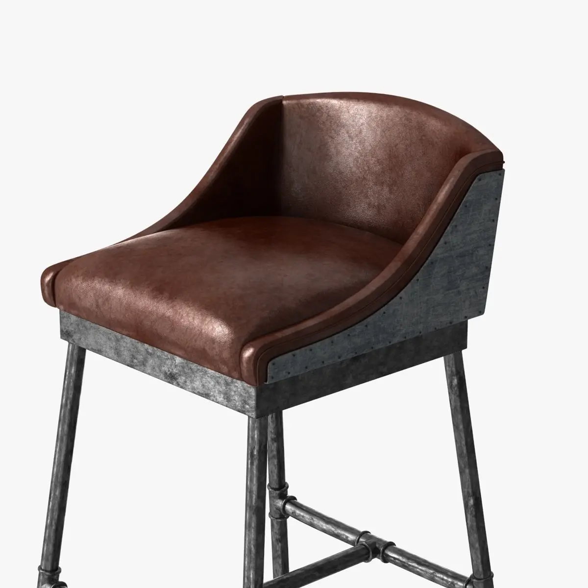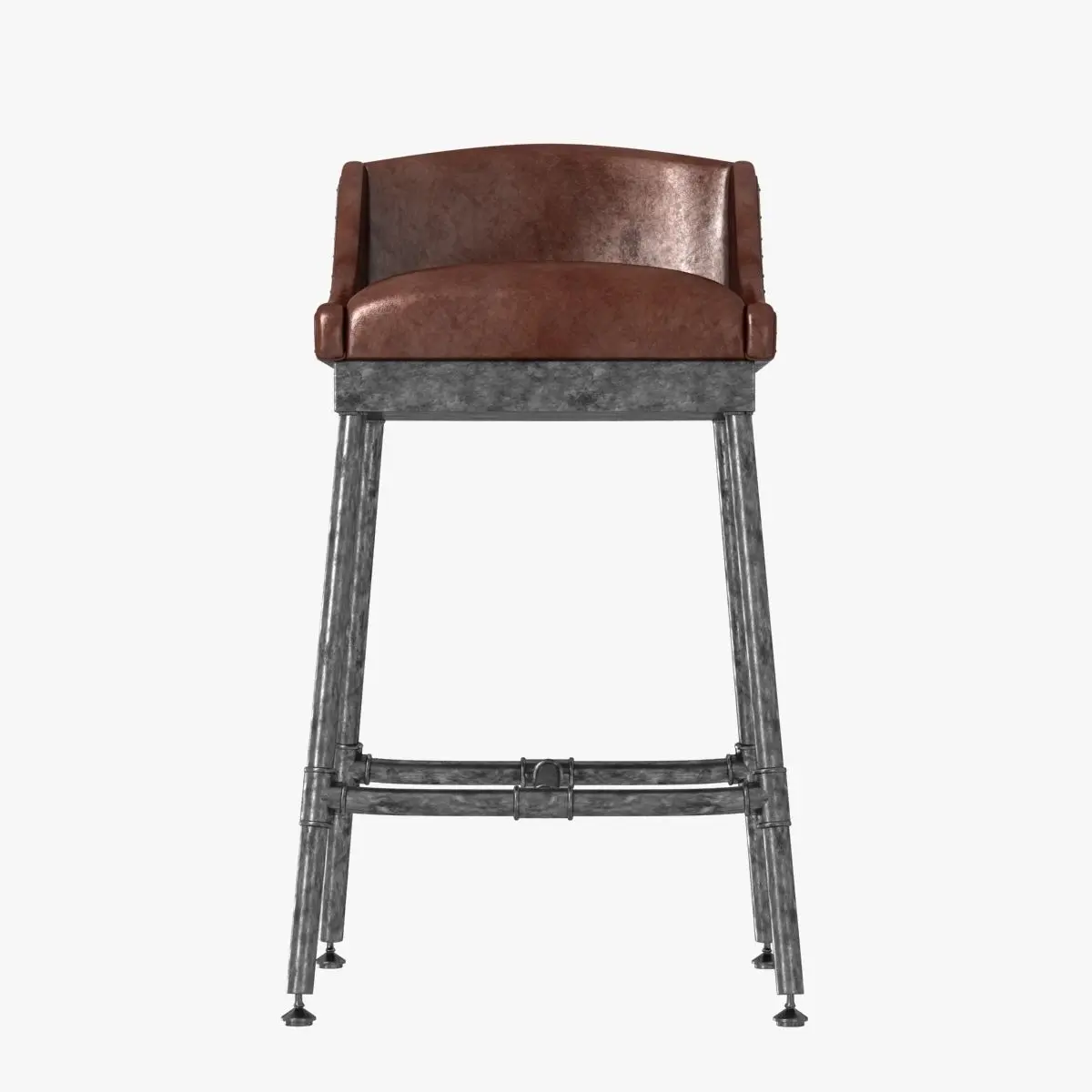 Inspired by a mid-20th-century design, our barstool is a striking mix of industrial and modern, rustic and refined. Its supple leather seat sits a tubular steel base, while sloping wings and a low camelback add distinctive style.