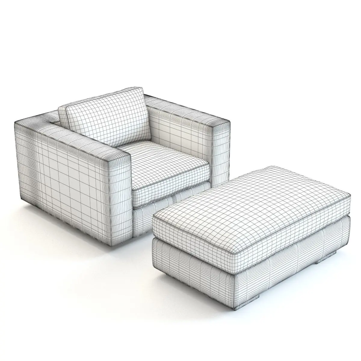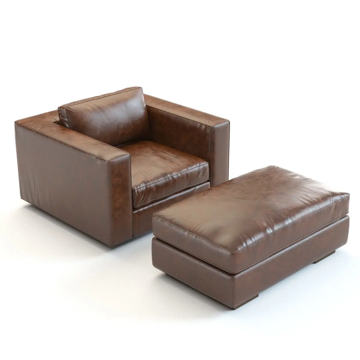 3D Model – High-detailed 3D model of the Restoration Hardware Maddox Leather Armchair and Ottoman. 2 colours