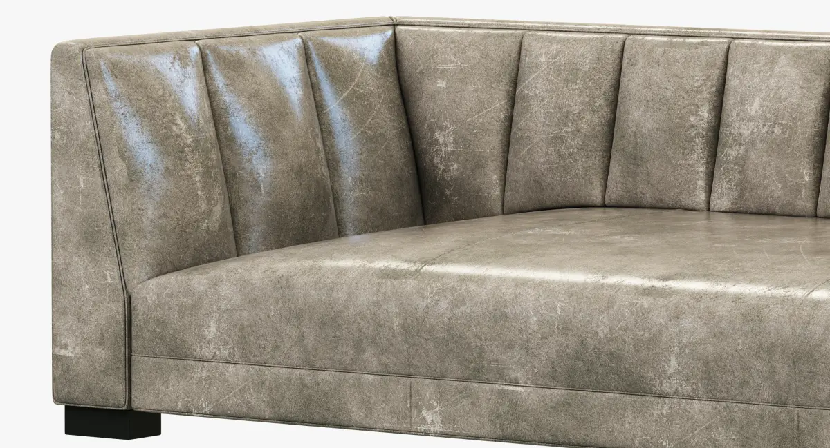 Vertical channel stitching adds visual and tactile depth to our collection's rich upholstery. Inspired by 1970s postmodern design, the low-sitting frame features a high back, plush bench cushion and sheltering arms.