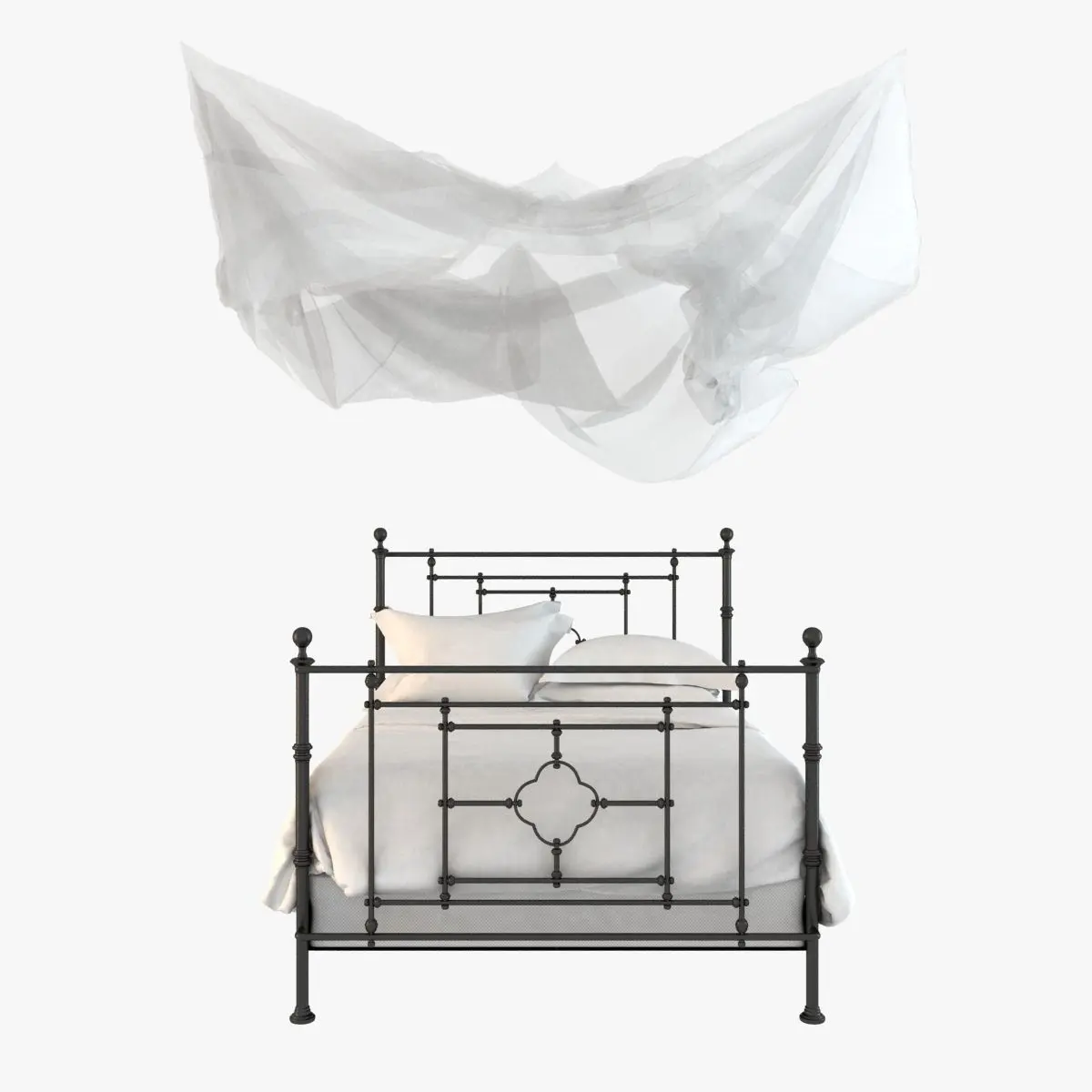 Iron furniture became popular during the 19th century, as metalworkingadvanced and artisans deployed revival-style curves in their projects.Our bed was inspired by an iron fence along the banks of the Danube,complete with Gothic quatrefoils framed in the openwork headboard and footboard. Stout supports are embellished with finials.