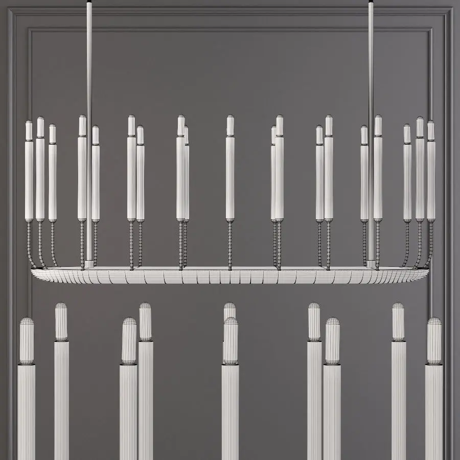 Overall: 50L x 15¾WBottom Brass Frame: 48L x 8W x 1¾HMinimum Height: 26Maximum Height: 156(including all extension rods)Canopy: 36½L x 5W x 1HChandelier Body: 19½"H