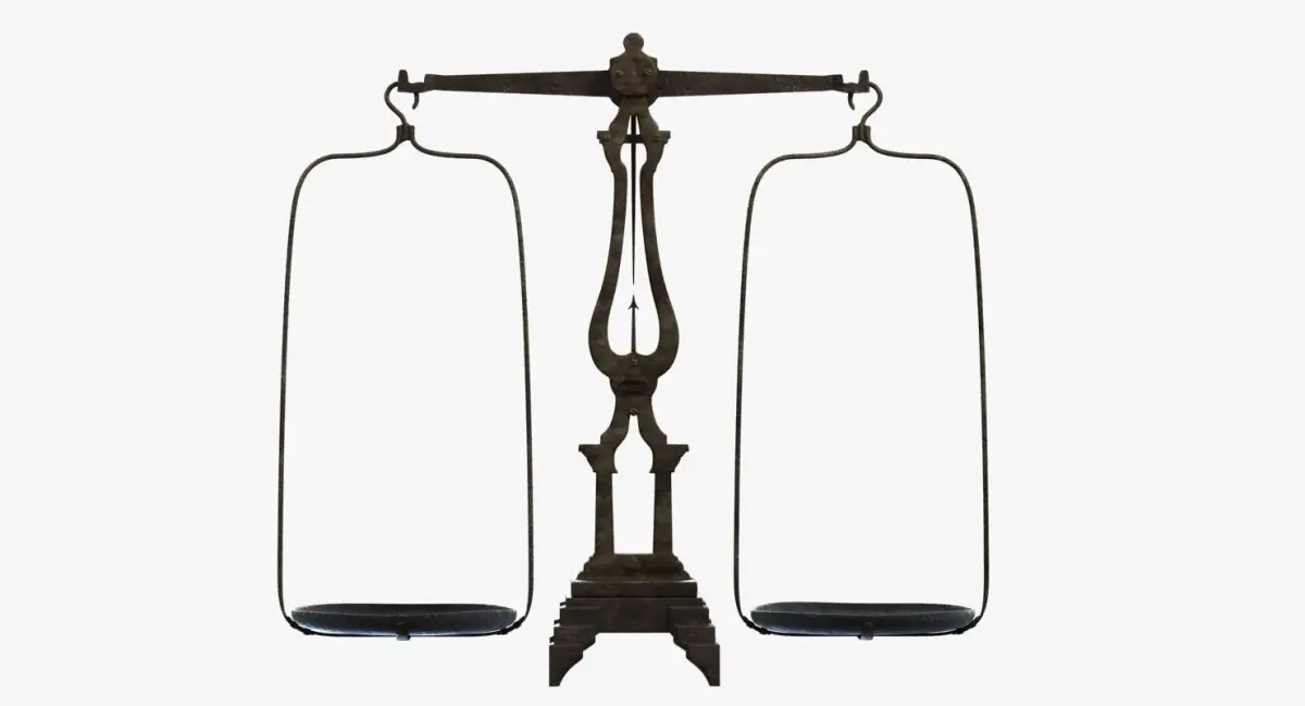 A universal symbol of fairness and equality, our reproduction of a French antique dates to the Second Empire of Napoleon III. Embellished with a lyre-shaped post and peaked bales, our scale is made of cast iron with a rich, textured patina. Its large size indicates that in its former life it was used in a market hall or other commercial enterprise.