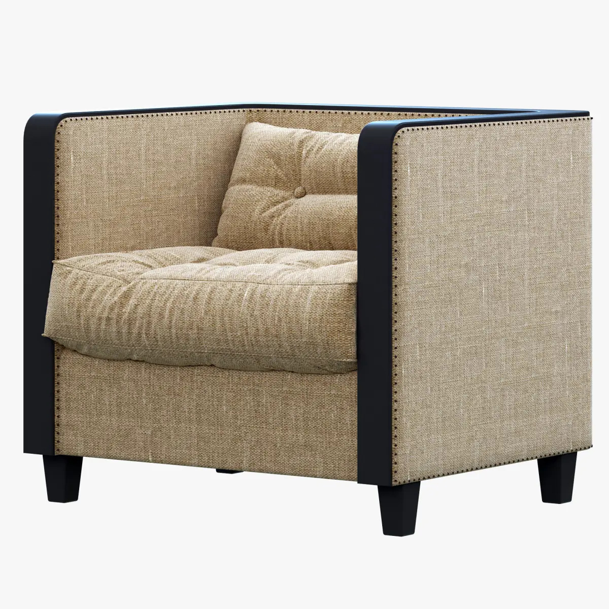 The clean profile of our circa 1930s French armchair exudes a timeless appeal, with its low, sculptural rectangular form, deeply tufted cushion and sturdy silhouette.