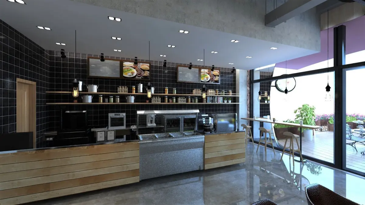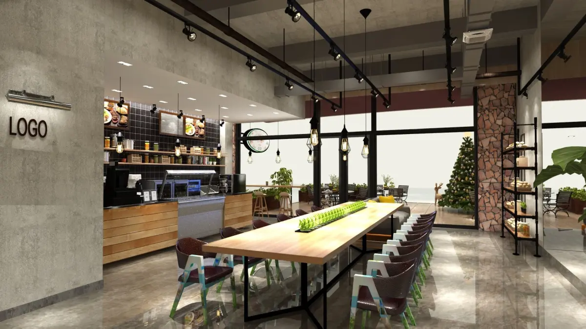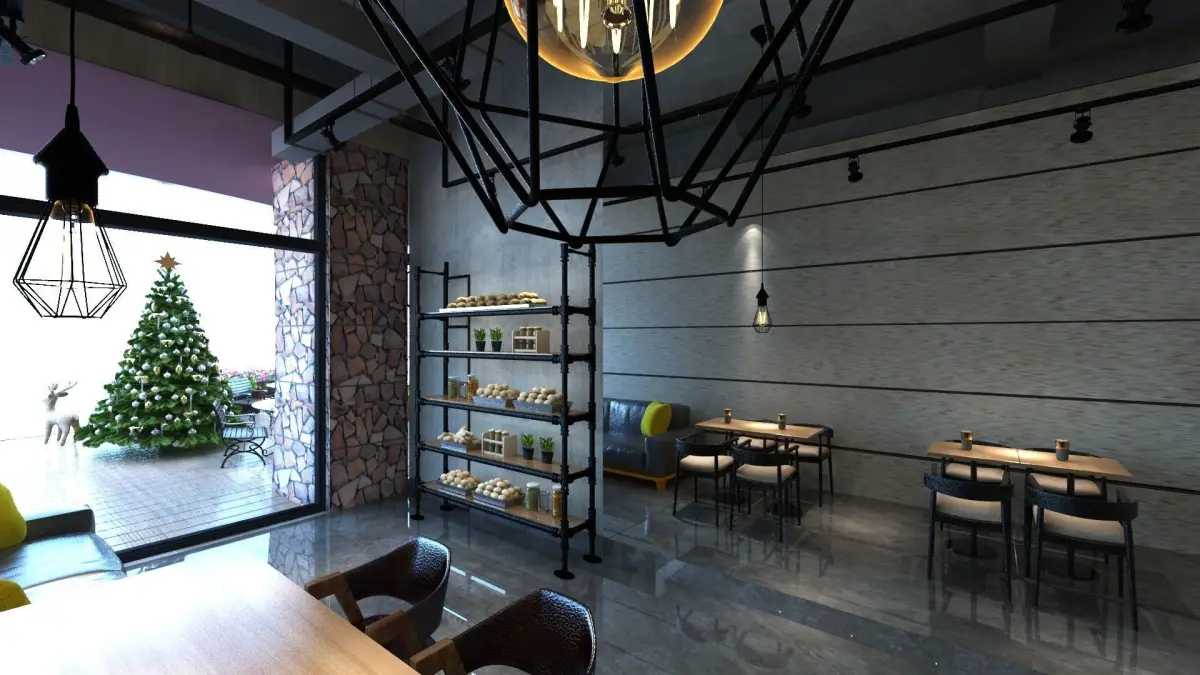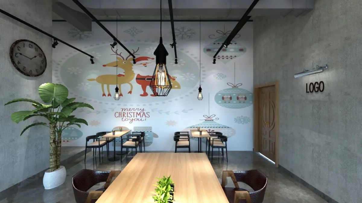 Resturaunt design with Christmas decoration.