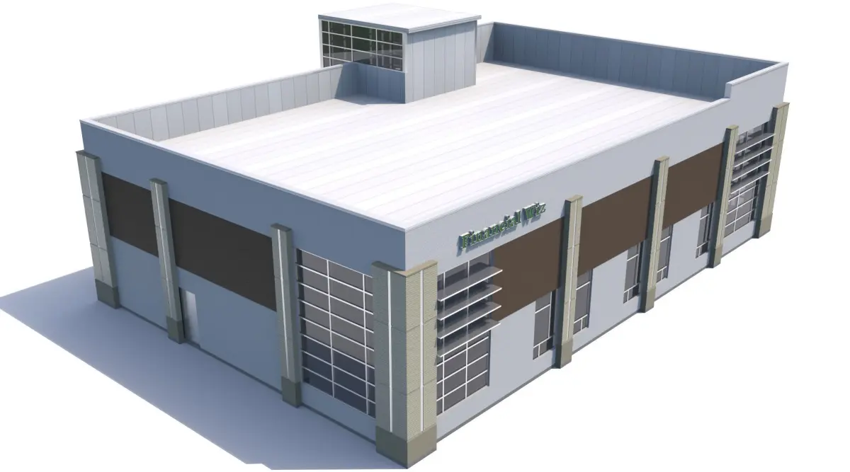 -Modeled to Scale and dimensions: 57'x86'x25'H-Modeled originally in Revit 2015, merged into 3ds Max 2015, cleaned up and features added, Rendered using Vray.-All textures included, concrete, stucco for bump, brick. Textures will have to be relinked from folder.-Signage included- can be easily changed outModel without signage: Polygons: 37,714, Vertices: 58,222-Model objects all grouped into 1 group for easy scene movement-Model set to 0,0,0 axis-Revit model included and last rendering is from Revit 2015
