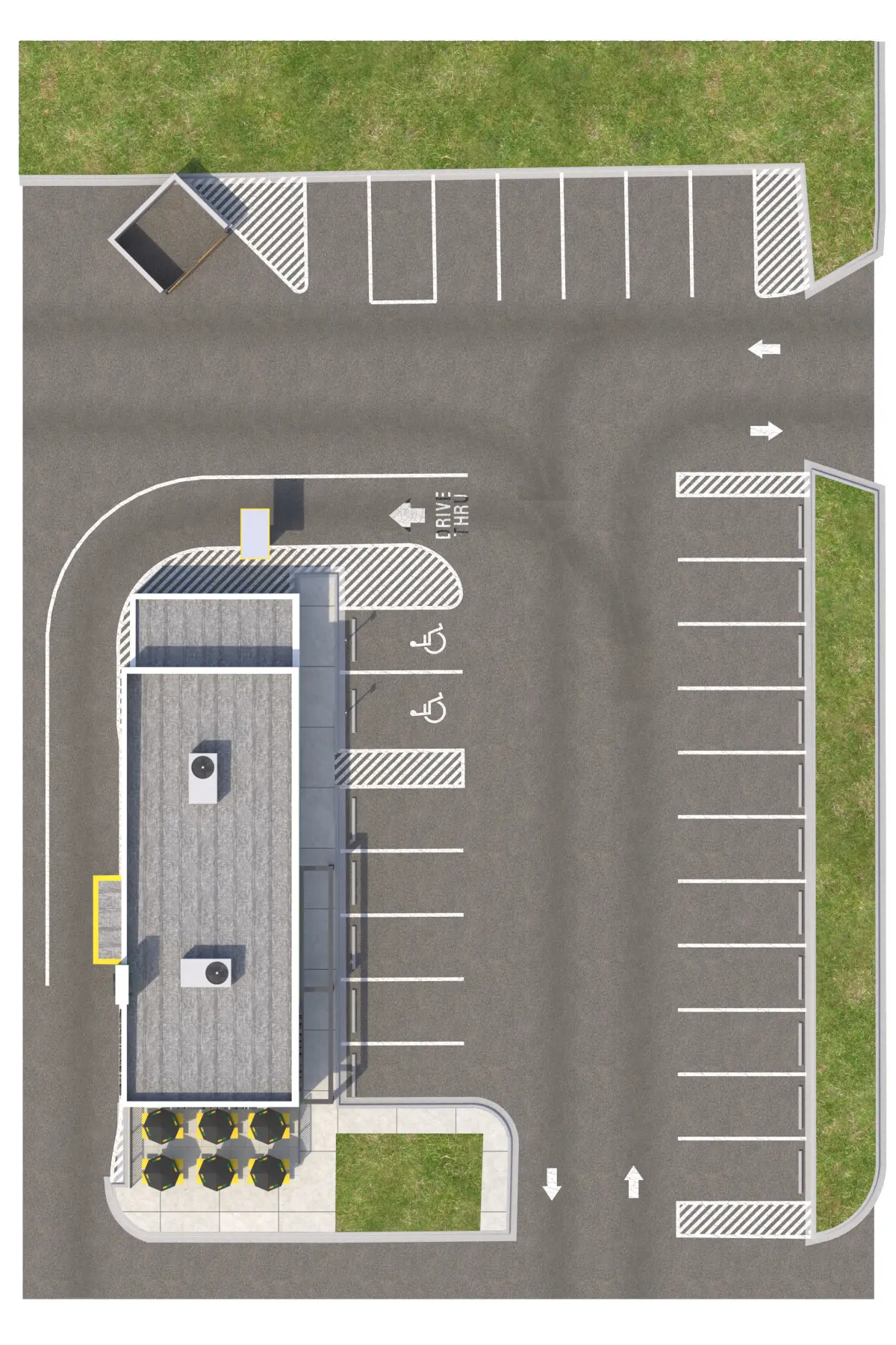 -Model includes:*Exterior Enclosure*Canopys*Subway Signage*Roof top mechanical units on curbs*Textures*Doors and windows*Light Fixture in rear*Some interior walls and slab only, this is an Exterior model*Grass*Sidewalk*Order Machine/Sign*Curbs*Parking Wheel Stops*Handicap Sign*Parking stripes and Signage*Trash Enclosure*Tables and Umbrella*Street Oil Slicks