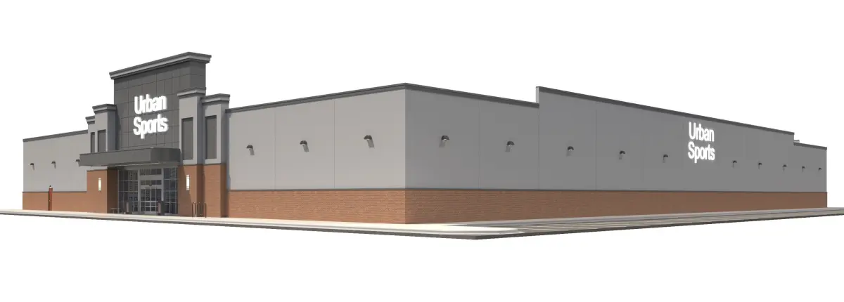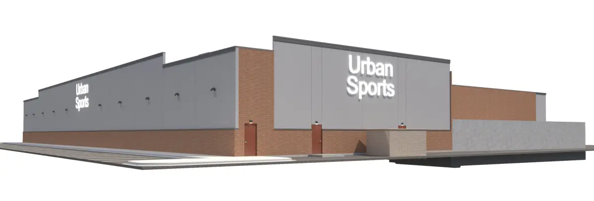 High Detail 3D Exterior Model of a Retail Store: Currently has signage for a generic Urban Sports Store