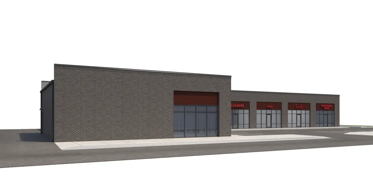 -3D model of a strip mall/outdoor Mall with tenants as shown in renderings