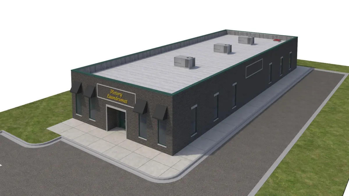 -Signage included-Roof Top Mechanical Units Included-Sidewalks, grass, curbs, road, parking lot striping included-Grass has a subdivision on it to show the 3d grass.-Model objects all grouped into groups for easy scene movement per building, 1 group for site, 1 group for building.-Modeled in 3ds Max, Rendered using Vray and HDRI sky. HDRI map NOT included.-All textures included in Zip File, textures may need to be relinked.-Site is modeled so it can be expanded on with other buildings, this will be part of a set of other street buildings.-Other file formats have been provided by not reviewed in other software's.