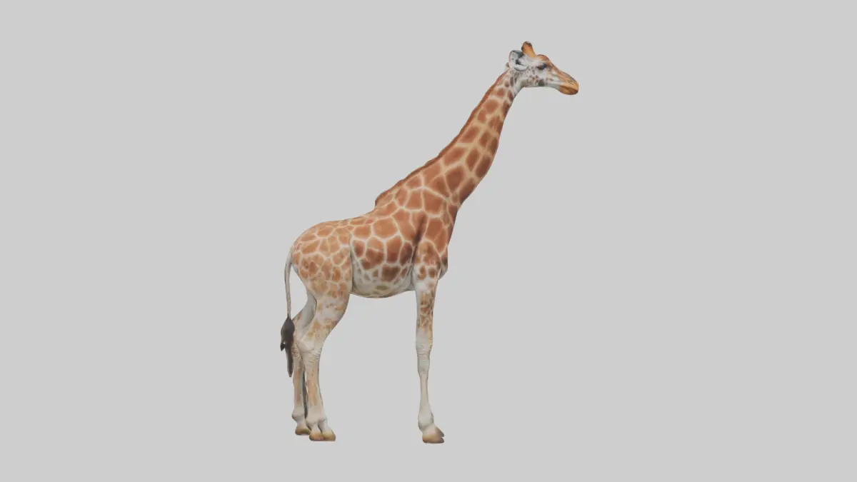 Szczegółowy model 3D żyrafy siatkowanej, charakteryzującej się siatkowym wzorem na sierści i realistycznymi proporcjami. Model doskonale nadaje się do symulacji dzikiej przyrody, wystaw edukacyjnych i projektów animacyjnych. Długi szyja, realistyczna muskulatura i precyzyjne tekstury nadają autentyczności każdemu projektowi. Idealny do gier, dokumentów przyrodniczych czy druku 3D. Dostępny w formatach FBX, OBJ, STL, GLB, USDZ i BLEND.
