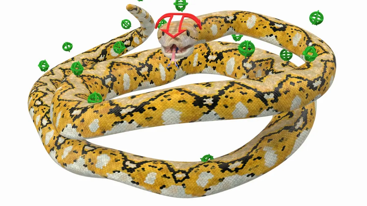 Reticulated Python Rigged for Maya is fully rigged and is ready to be animated in Maya. You can easily position it the way you need or animate it the way your project requires. See the screenshots to get an idea of how rigging works. The pose of the model on the render images is an example and can be recreated using rig, it is not initially included into the product.