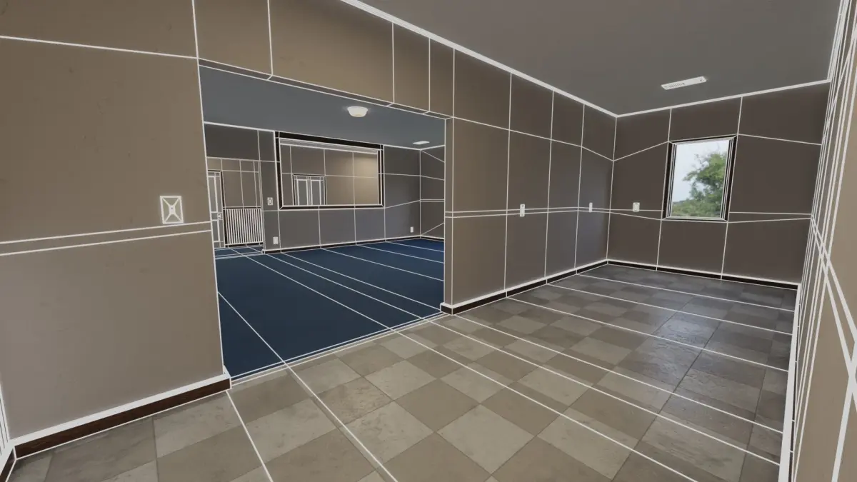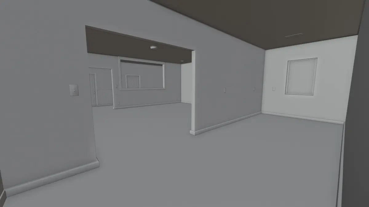 This Interior only includes a living room and kitchen, the doors in the hallway dont lead anywhere but are fully modeled if other rooms want to be added. The mesh is viewable from all angles of the interior. This model is not meant to be viewed from the exterior. INTERIOR ONLY. This interior is prefect as a retro 80s scene location and can easily be set dressed with props. Outlets, vents, and switches are on the walls and ceiling making this feel like a real empty interior.