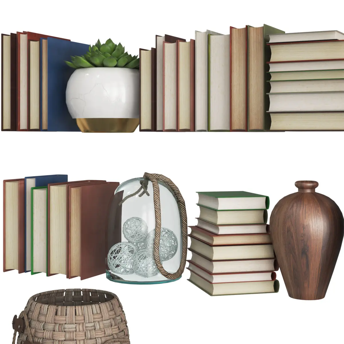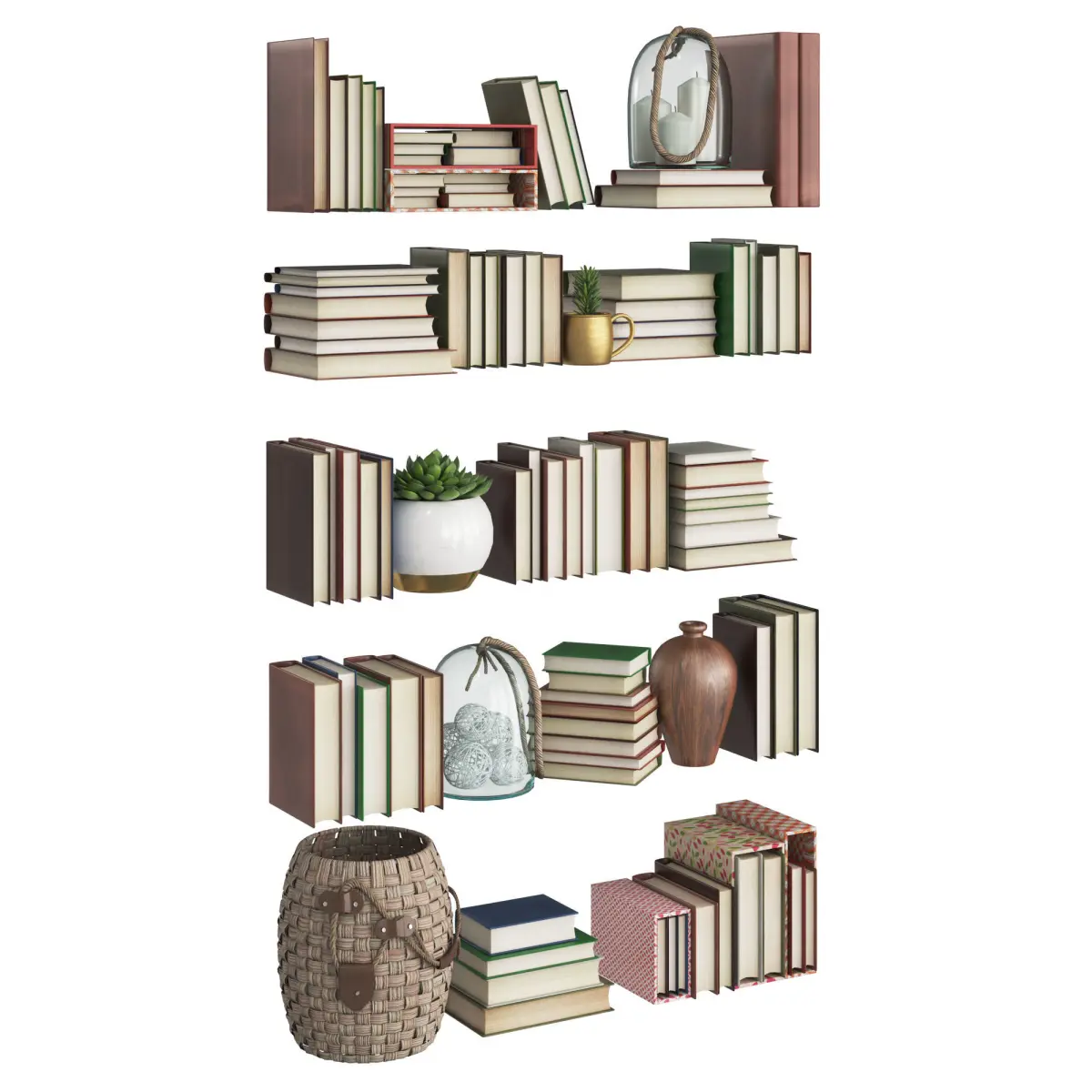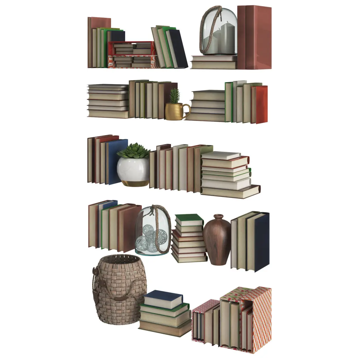 Set of old books and decor elements in retro style