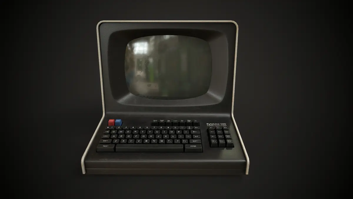This detailed 3D model represents a classic computer terminal, inspired by designs from the late 70s and early 80s.