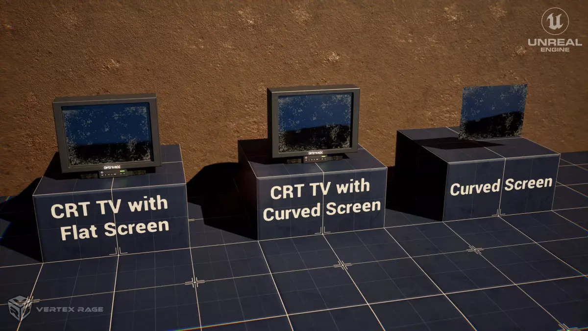 - 2 model versions: base CRT TV with flat screen (for ease of displaying custom content over it) and extra curved screen for authentic feel.