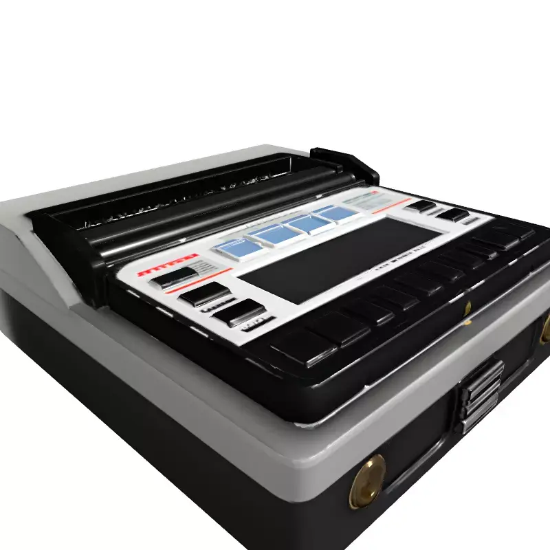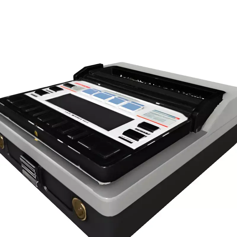 This highly detailed 3D model represents a vintage or retro-futuristic electronic lab device, reminiscent of an old-school portable data recorder or a specialized scientific instrument with integrated printing capabilities. Its robust design features a multi-button control panel, a central display, and a paper output slot, suggesting advanced analytical or record-keeping functions. The model is meticulously crafted with clean topology, making it versatile for various production pipelines. It is perfect for enhancing game environments, particularly in sci-fi, cyberpunk, or historical settings, serving as an authentic prop or interactive element. Architectural visualization artists can utilize this model to bring character to laboratory, clinic, or industrial scenes, adding a touch of vintage technology. Digital artists and animators will find it an excellent asset for film, animation, or still renders, providing rich detail and visual interest. The asset is fully UV unwrapped and includes PBR textures for realistic rendering across different lighting conditions. Optimized for high-quality static renderings, it can also be adapted for real-time applications such as augmented reality (AR) or virtual reality (VR) experiences, depending on the polycount. Supported file formats typically include GLB, OBJ, STL, ABC, DAE, FBX, USD, and PLY, ensuring broad compatibility with major 3D software. Its intricate details and professional finish ensure it will seamlessly integrate into any project requiring a distinct retro-tech aesthetic. This model is ideal for adding an authentic, specialized electronic device to your 3D asset library.