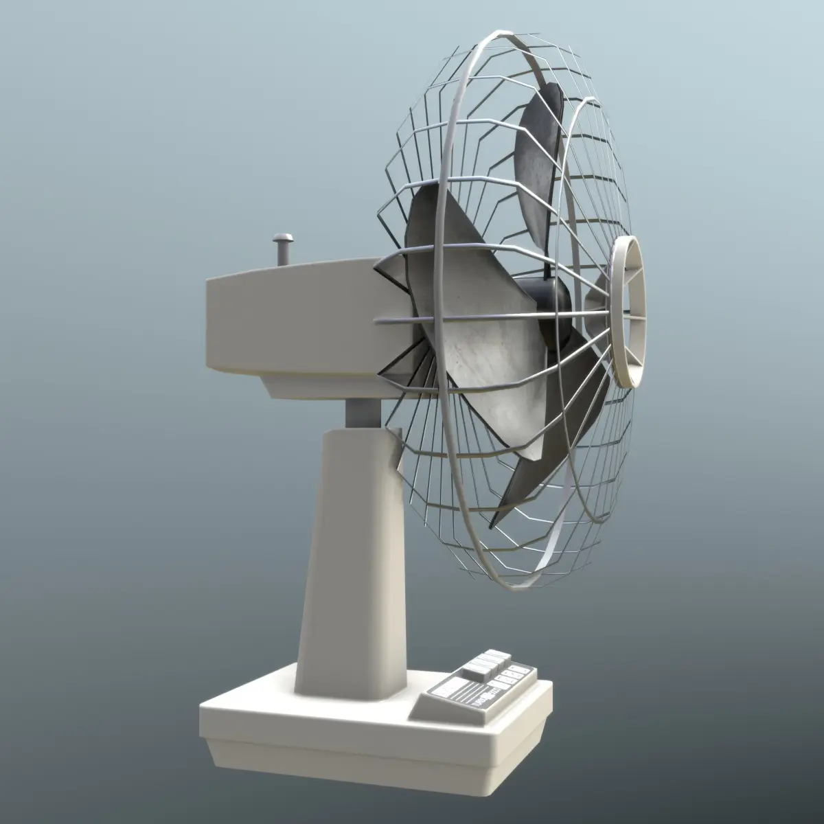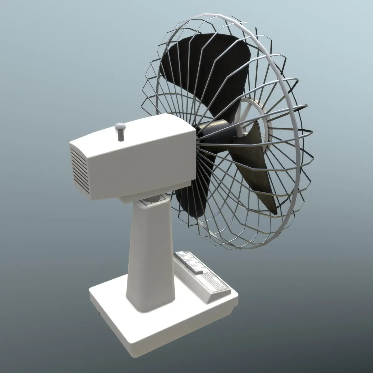Retro Old Fan - clean and old 3D assets - game-ready - highpoly on lowpoly - modeled with Blender 2.82, textured carefully with Substance Painer.Rendered with Eevee (also with different HDRIs). Some parts like buttons and rotor are separated objects parented to the base. Single material. UV mapped for most optimal use of UV space. Metric units.