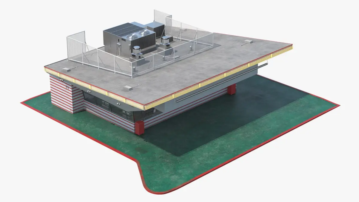 Retro Fast Food Restaurant is a three-dimensional model of vintage fast food restaurant that is a retro style quick service (QSR) restaurant building.