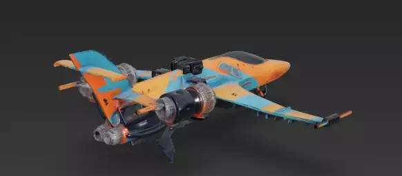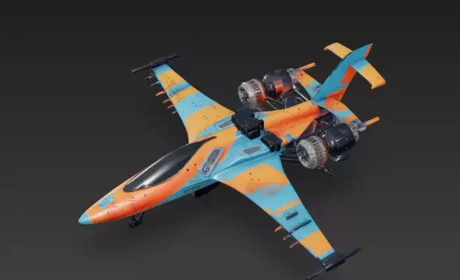 TagsJet Fighter SciFi Futuristic Retro Aircraft Vehicle Orange Blue Camo Engine Exposed Worn Splatter Prop GameAsset Combat Racing Aerospace Pilot