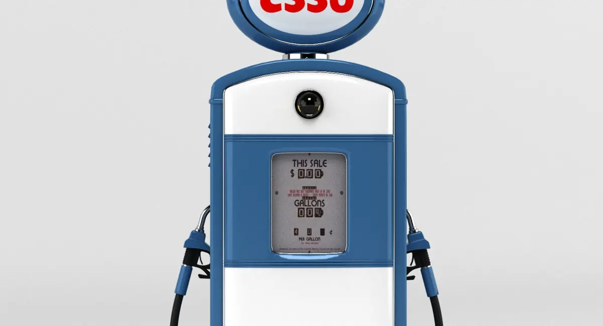A DETAILED 3D MODEL OF A RETRO GAS STATION PUMP: