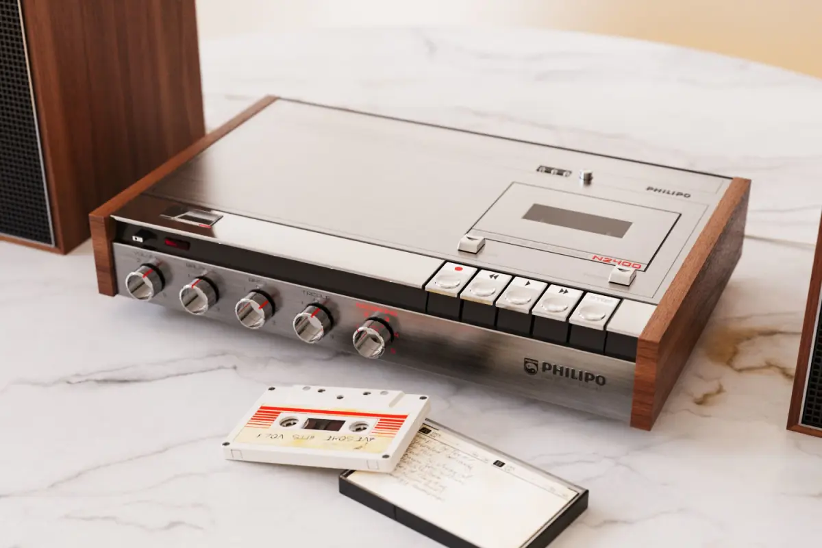 High-quality, photorealistic Retro Stereo-Cassette-Recorder inspired by Philips N2400Model prepared for architectural visualizations inside various 3d software.