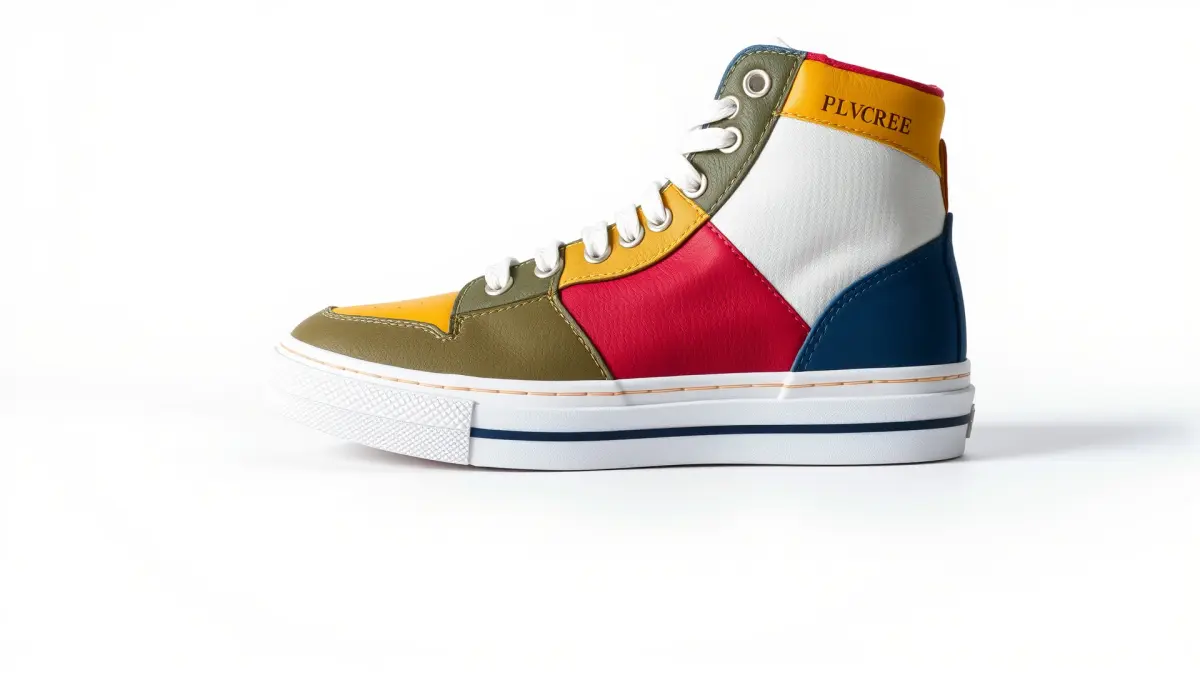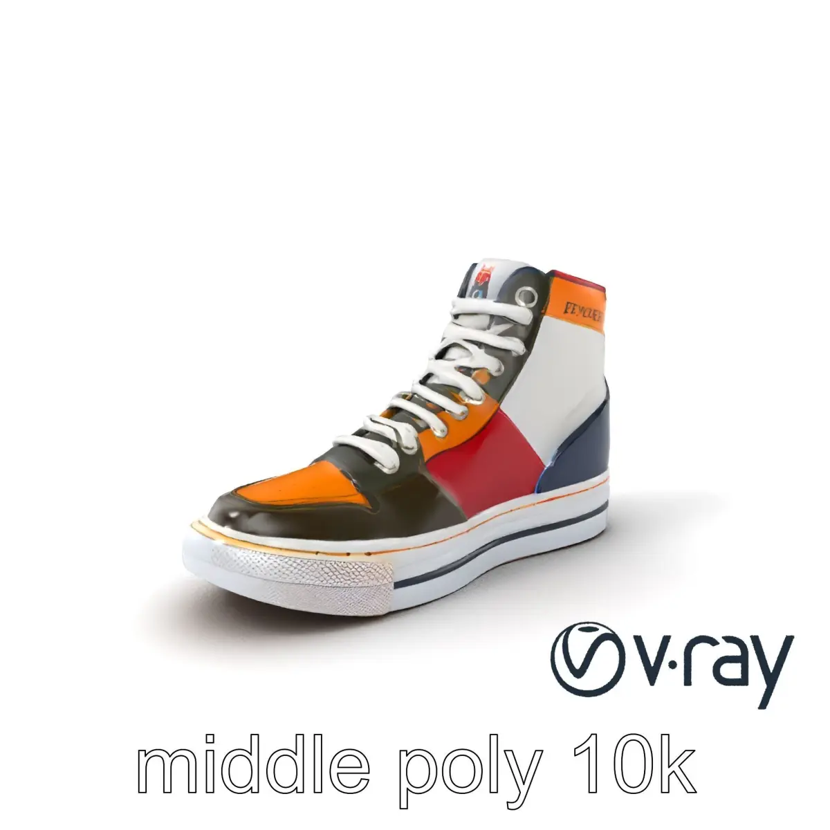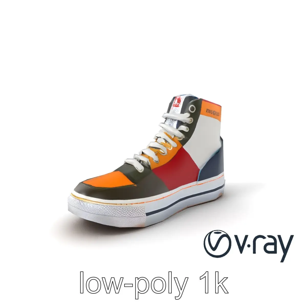 Perfect for fashion visualizations, advertisements, and virtual reality applications. The sneaker features vibrant color blocking, a cushioned sole, and classic leather detailing.