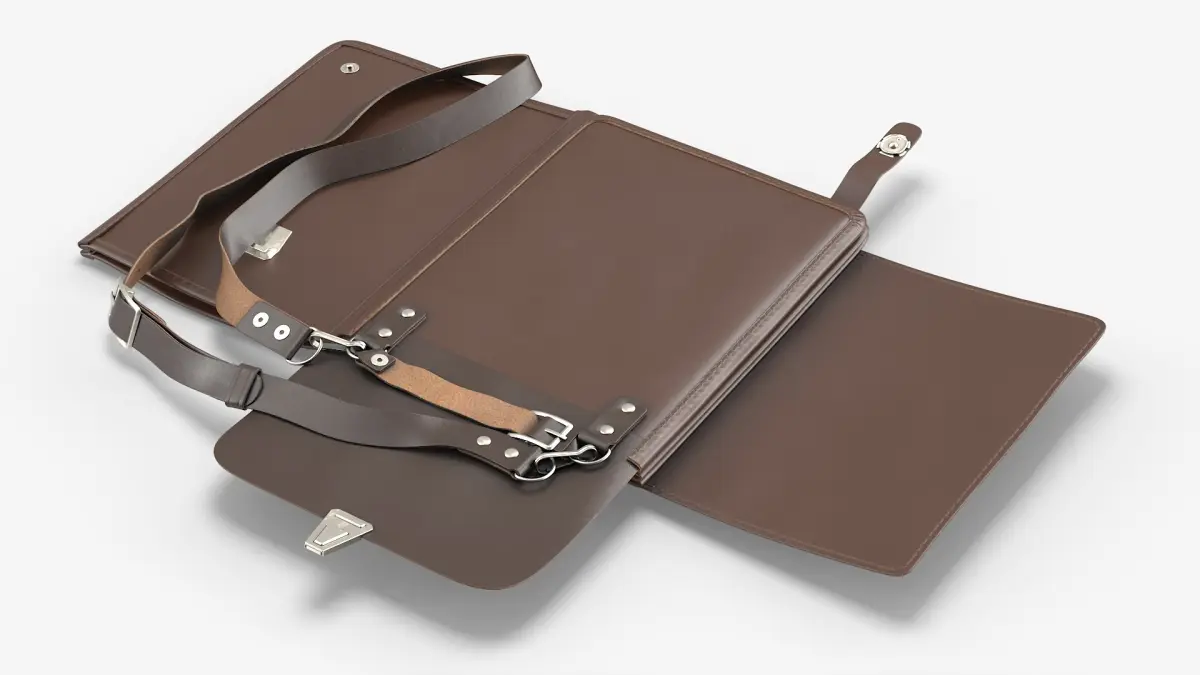 Retro Military Officer Tablet Case Opened Brown is a three-dimensional model of ancient (old time) military shoulder bag used during mid-20th-century field operations.