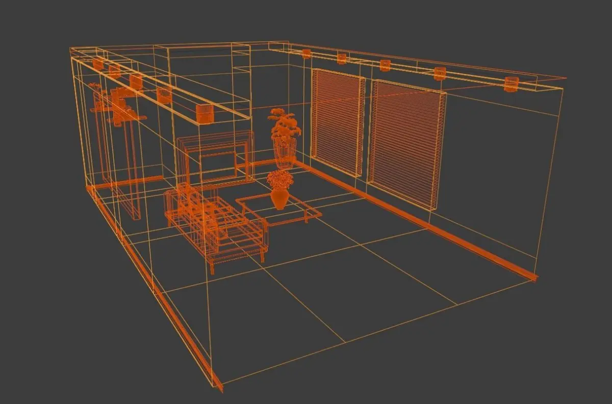 This blender scene contains a retro-modern living room well laid out.