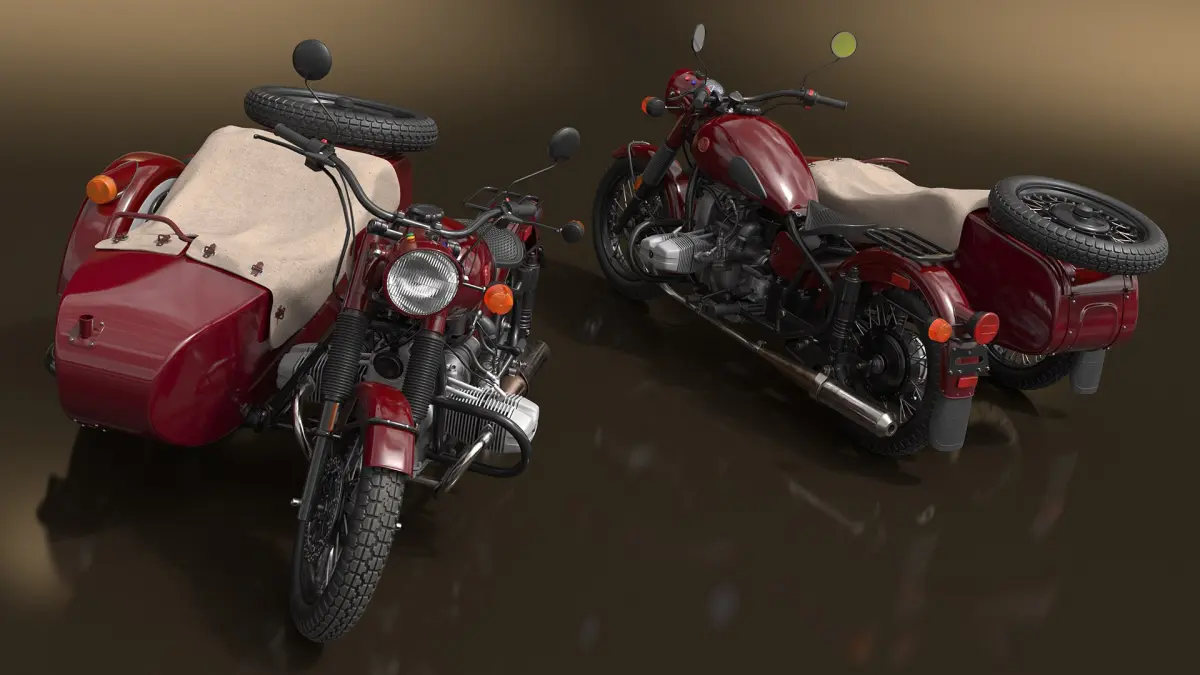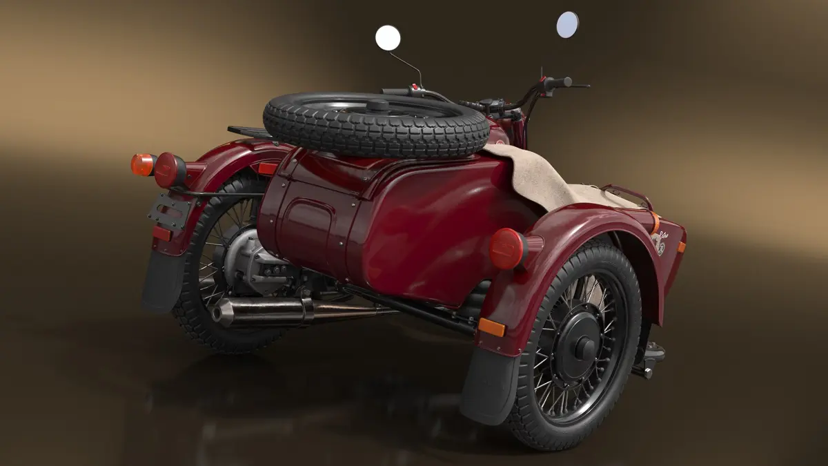 Retro Motorcycle Ural M70 with Cradle Maroon Color Rigged is a high quality, photo real 3d model that will enhance detail and realism to any of your rendering projects. The model has a fully textured, detailed design that allows for close-up renders, and was originally modeled in 3ds Max 2020 and rendered with V-Ray. Renders have no postprocessing!