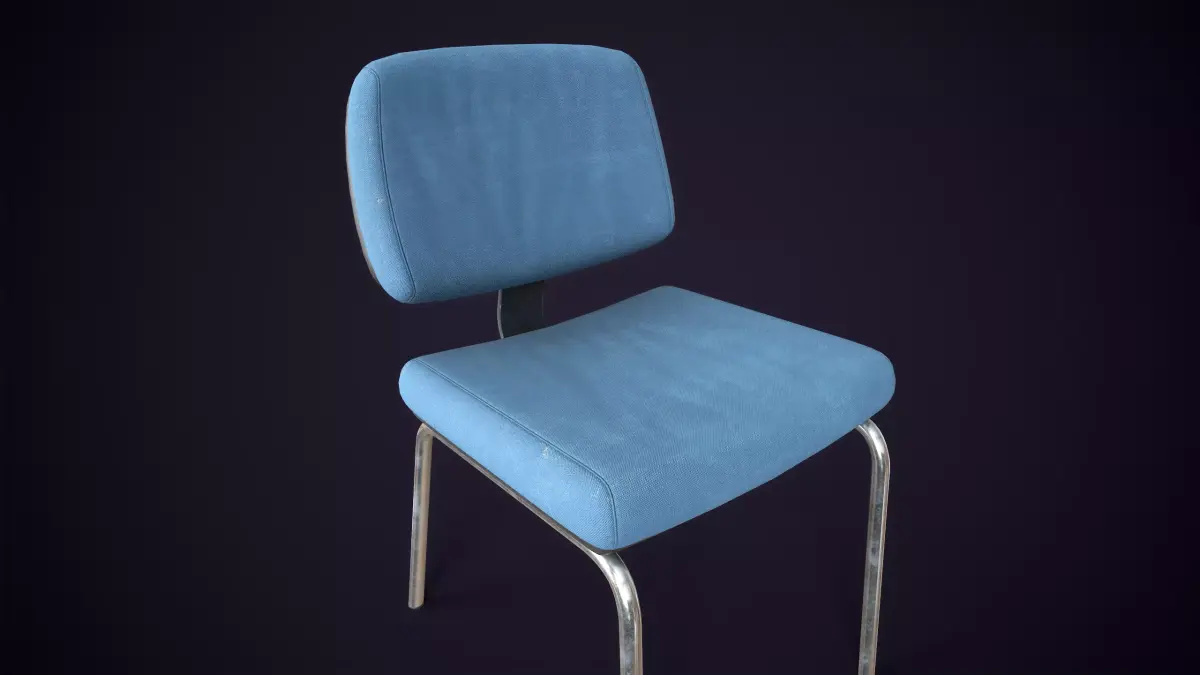 It features a chrome-plated metal frame with a padded fabric seat and backrest.