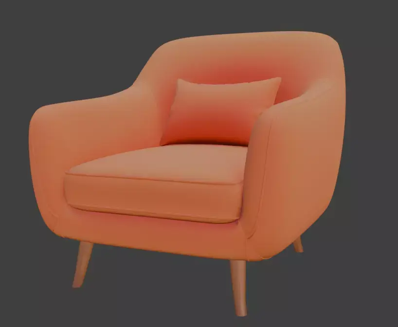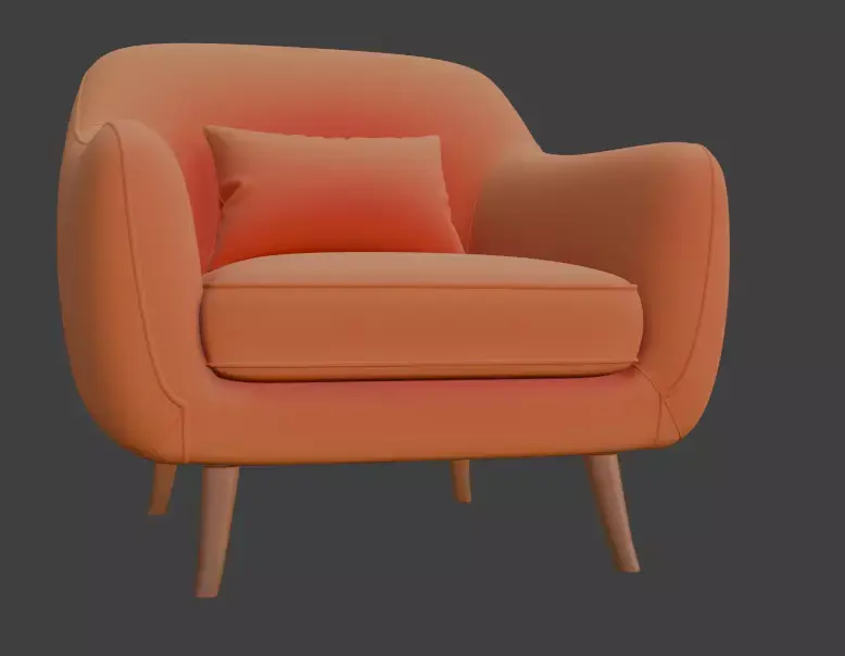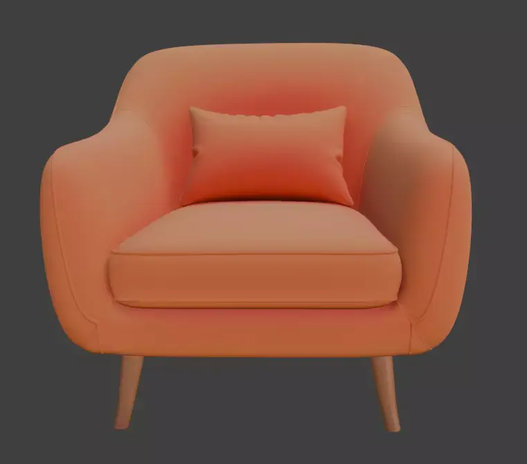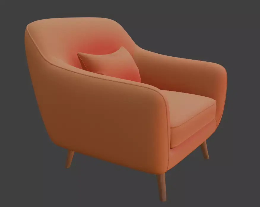 This 3D model features a retro-style orange armchair with a soft cushioned seat and wooden legs, perfect for adding a vibrant touch to interior designs. Ideal for designers, architects, and artists, this model is optimized for high-quality rendering and easy customization, making it a versatile asset for creative projects or portfolios.