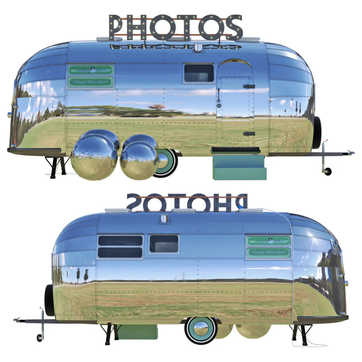 Retro Photo Studio and Photozone Airstreamstudio, Turbosmooth for smooth details enabled for render only and dependent.