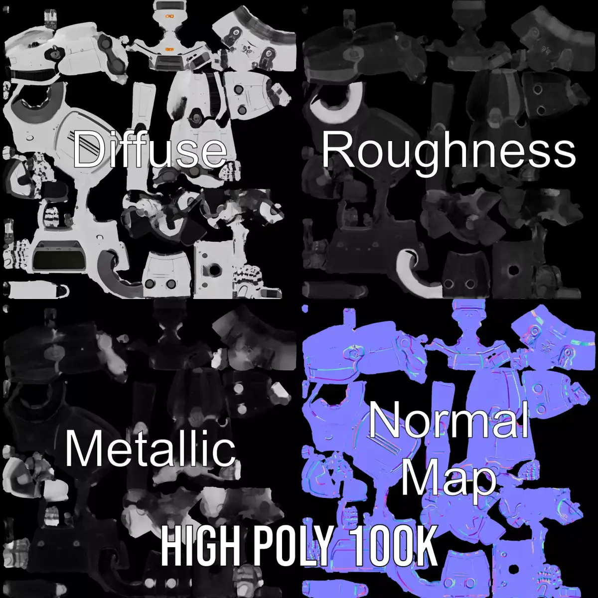 The retro robot model pack features a charming and detailed design reminiscent of classic robots. This versatile model is perfect for animations, sci-fi scenes, and interactive applications. Each model has 3 levels of detail: low-poly (1000 triangles for mobile), middle-poly (10,000 triangles for environment), and high-poly (100,000 triangles), which allows for the use of this model in production rendering (such as 3ds Max, Maya, Cinema 4D, Blender, Vray/Corona/Cycles, and all others), game engines (Unity and Unreal compatible), and interactive presentations, providing a choice of detail based on the LOD system principle. The textures are PBR, Diffuse, NormalMap, and reflection/roughness/metallic, suitable for any modern rendering engine. All models are accurately unwrapped with no overlapping UVs. All textures are 4096*4096 in size. The first image is the reference used for creating the 3D model. It is important to carefully evaluate the quality of the model by examining the preview images that display the topology and polygonal mesh. These previews (WIRE and WEB 3D Preview) clearly demonstrate how accurately the model matches the original reference and how well the geometry has been executed. If you like this model, please leave a comment and a like to support our work.
