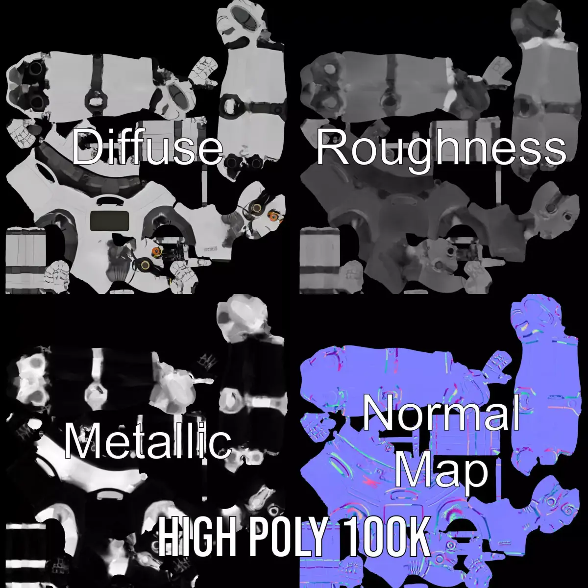 The model's textures are PBR, Diffuse, NormalMap, and reflection/roughness/metallic, which are suitable for any modern rendering engine. All models are accurately unwrapped and have no overlapping UV. All textures are 4096*4096 in size.
