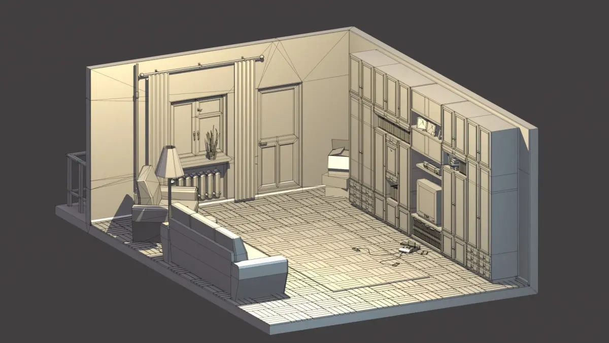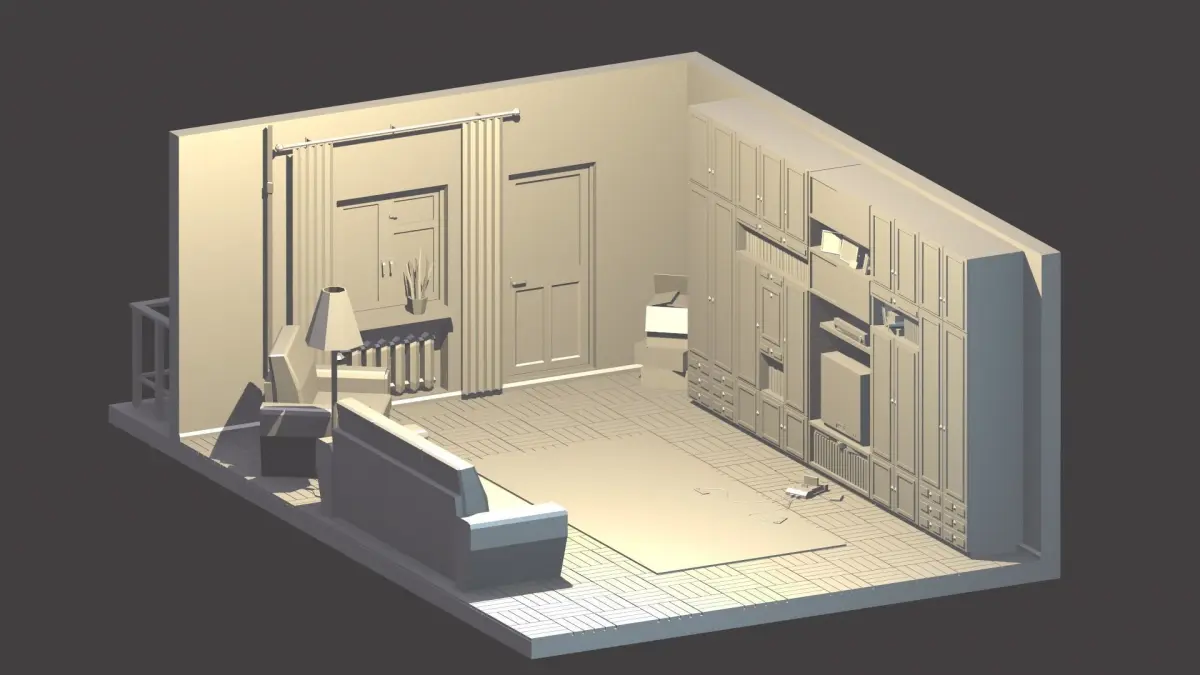 This is a low-poly model of a 1990+ Russian retro room interior. It contains a TV set, a game console, a video player, a sofa, an armchair, a wardrobe, a floor lamp and, most importantly, a carpet!I made one primitive texture for the whole scene, you can shrink it to a minimum. You can write your proposal for optimization or adding new objects.