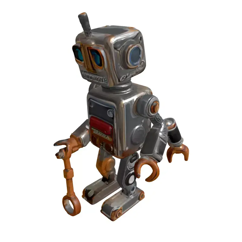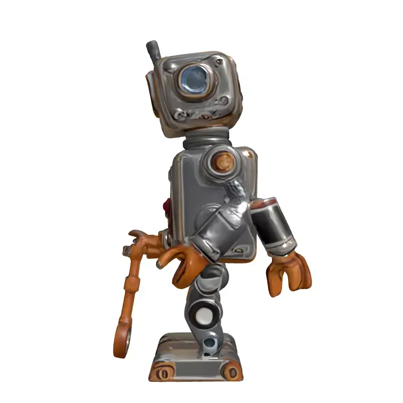 This meticulously crafted 3D model presents a charming, retro-futuristic robot, brimming with character and a distinctly weathered aesthetic. It features a robust, metallic body adorned with realistic rust, grime, and wear textures, indicative of a professional PBR (Physically Based Rendering) workflow. The robot's design masterfully combines vintage elements with intricate mechanical details, including expressive 'eye' lenses, a subtle antenna, and an integrated display panel on its chest. Each limb is carefully articulated, with one hand gripping a distinct wrench-like tool and the other featuring a functional three-fingered claw. This versatile 3D asset is ideally suited for a wide range of creative projects, making it an excellent character or prop for sci-fi, steampunk, dieselpunk, post-apocalyptic, or retro-themed video games and animated shorts. It is also perfect for immersive AR/VR experiences, high-quality digital art compositions, or as a unique collectible 3D printable figurine. The model boasts clean, optimized topology and efficient UV unwrapping, ensuring high-quality rendering and seamless texture application across various platforms. It is optimized for real-time game engines, while also being perfectly suitable for high-fidelity static renders. Supported file formats typically include GLB, OBJ, FBX, and USD, along with STL for 3D printing, ensuring broad compatibility with most 3D software and engines. Its detailed PBR textures significantly contribute to its realistic and visually appealing appearance, ready to drop into any scene.