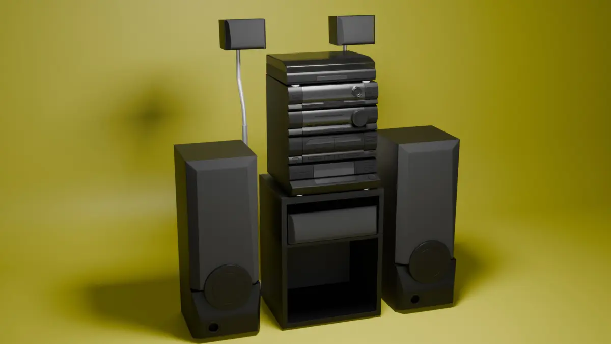 This game-ready stereo system brings the retro aesthetic of the '80s and '90s to life. It includes speakers, stacked audio components, and a base shelf – all with clean topology and optimized geometry.