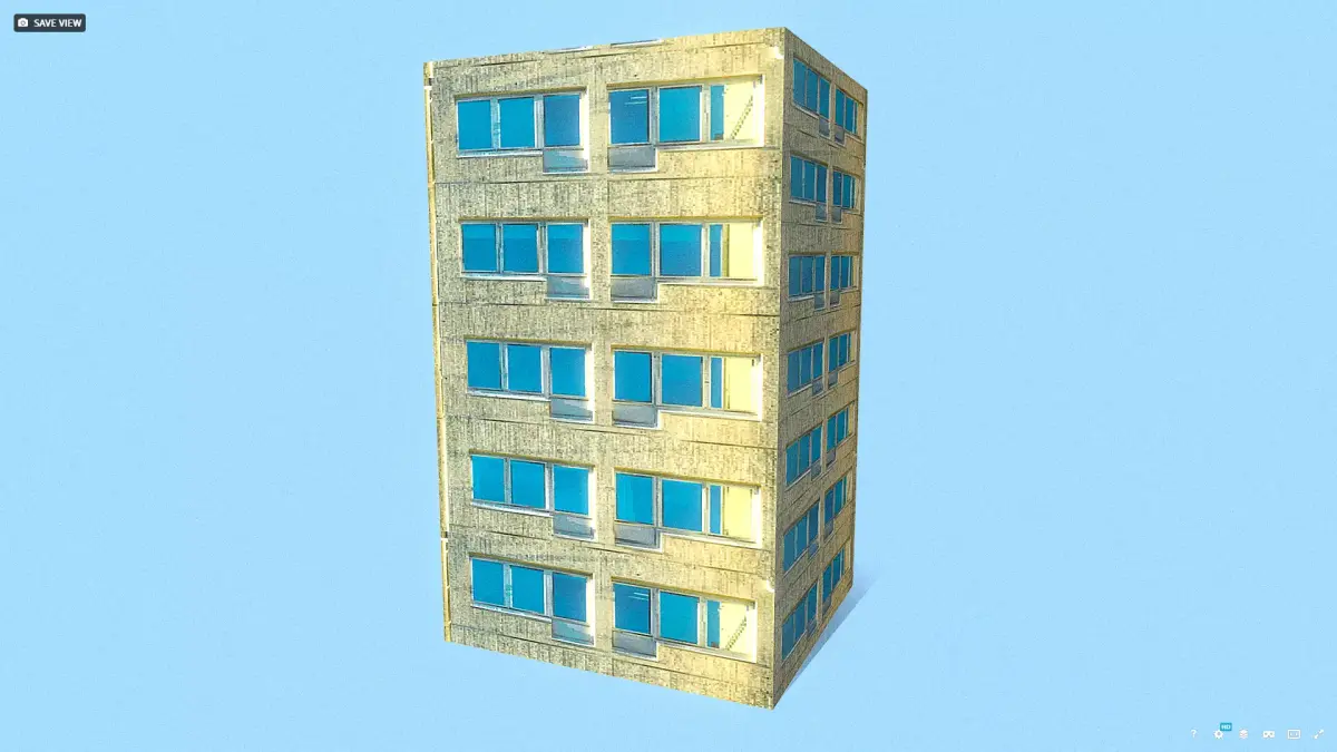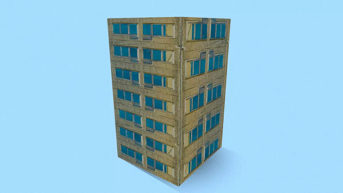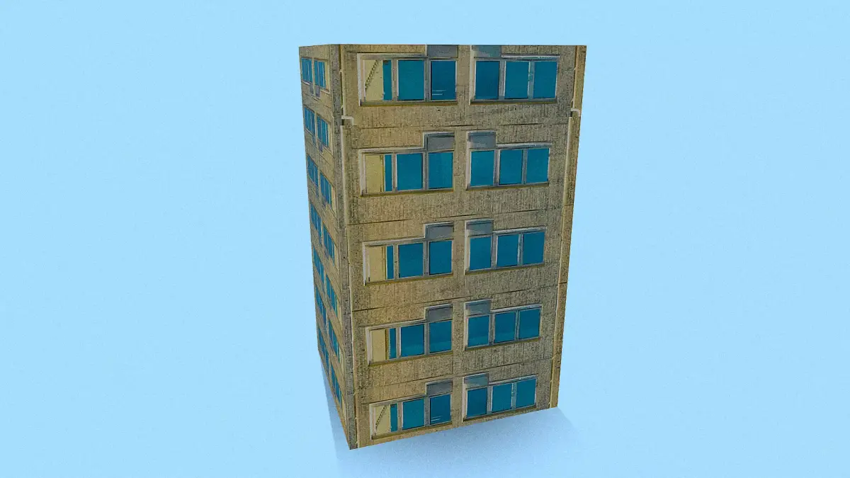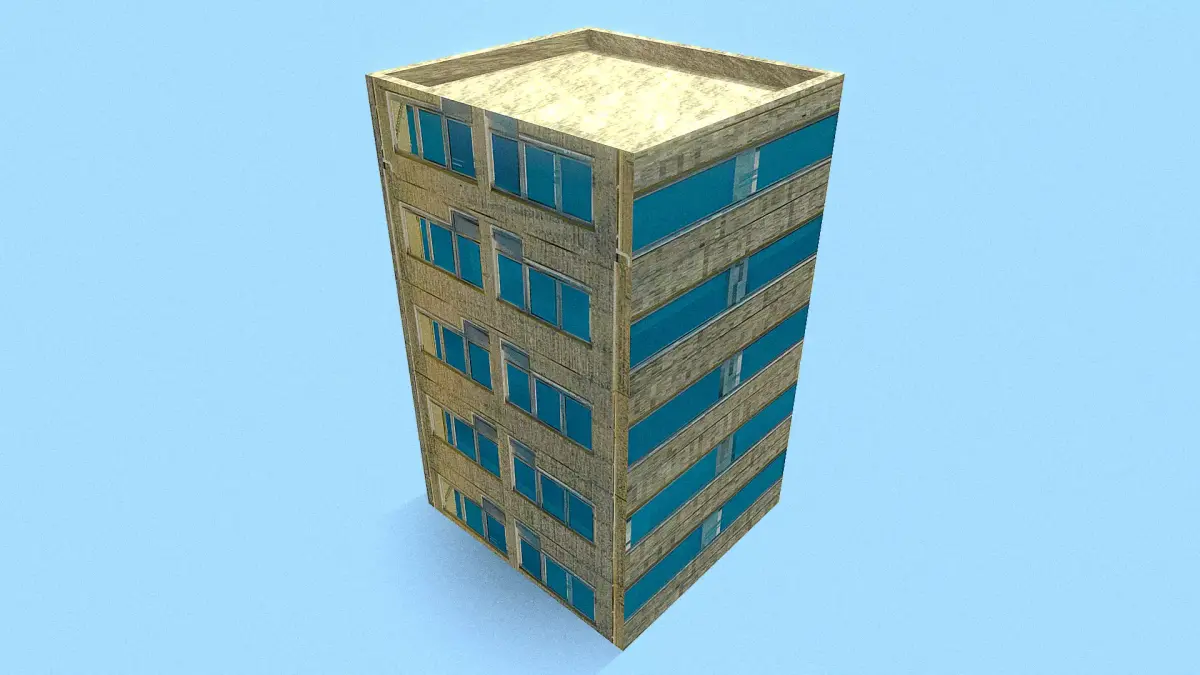 Retro Style Yellow Building Low-poly 3D model