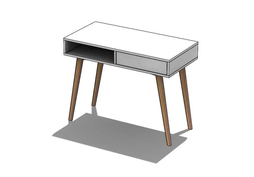 Retro table done in white plywood and wood combination