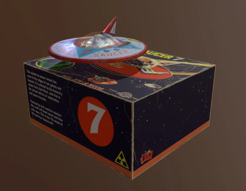 Retro UFO Toy low-poly 3d model ready for Virtual Reality (VR), Augmented Reality (AR), games and other real-time apps.