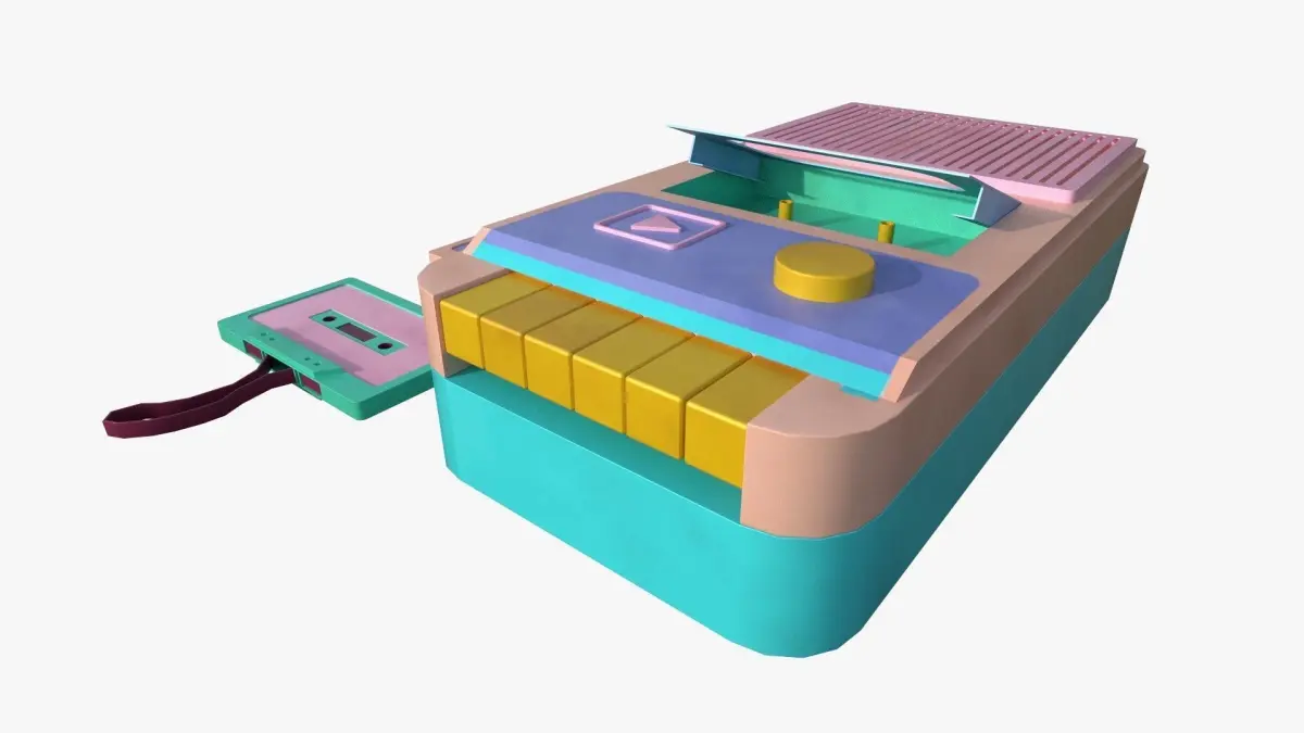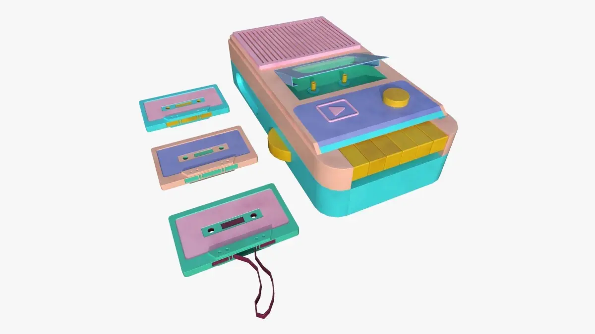 Retro Vintage Cassette Tape Recorder Stylized 3D Model