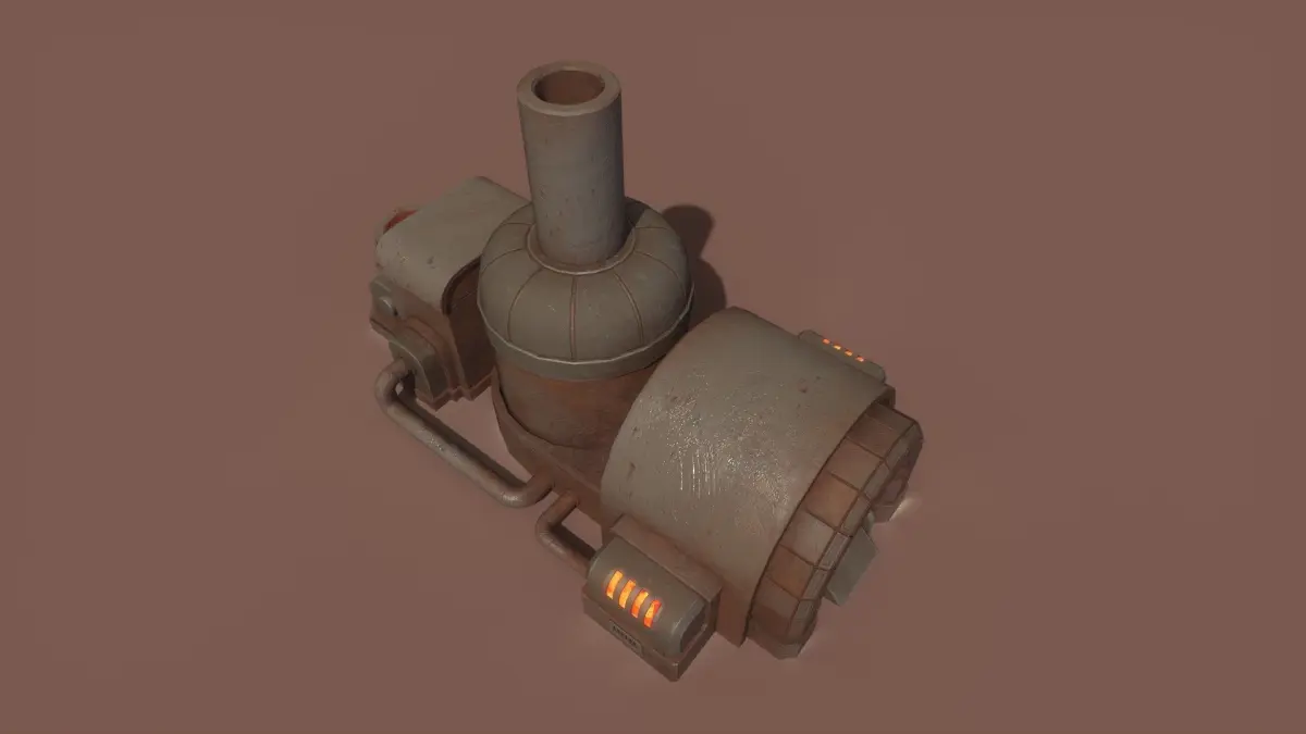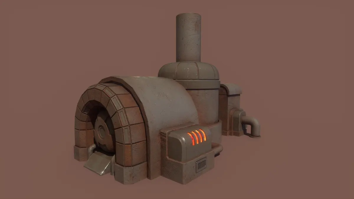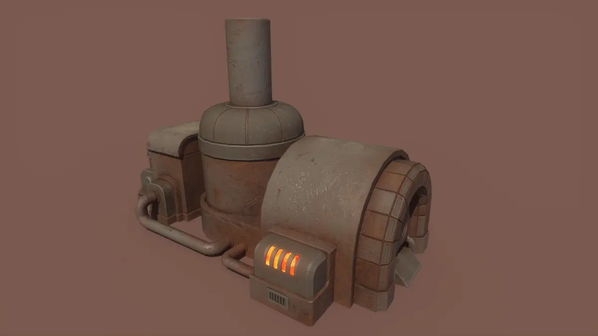 Stylized Retrofuturism Scifi Fantasy Megaforge model made in 3ds Max 2022 and textured in Substance Painter. No plugins/addons were used, weighted normals modifier is applied, most model parts don't have bottom (model contains open edges)