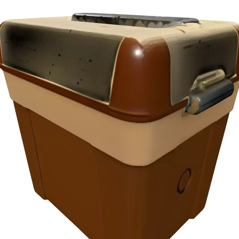 This highly detailed 3D model presents a stylized retro-futuristic industrial container, designed to serve as a versatile prop in various digital environments. Its rugged aesthetic, combined with a distinctive two-tone brown and beige color scheme and subtle wear details, makes it perfect for adding realism to your scenes. The container features a functional-looking top with metallic components and etched markings, hinting at a cooling or specialized storage purpose. This asset is ideally suited for game development, including first-person shooters, survival games, or simulation titles, where it can function as a loot crate, environmental dressing, or interactable object. It's also excellent for augmented reality (AR) and virtual reality (VR) applications, providing an immersive element to interactive experiences. Furthermore, it can enhance architectural visualizations of industrial or sci-fi settings, and contribute to unique digital art compositions. The model is optimized for real-time applications, featuring clean topology and efficient polygon count, ensuring smooth performance in game engines. It is also well-suited for high-quality static renderings due to its meticulous PBR textures and UV unwrapped meshes. Supported file formats include GLB, OBJ, FBX, USD, DAE, and ABC, providing broad compatibility across different 3D software and platforms. With its ready-to-use nature, this container is an invaluable addition to any asset library requiring robust and visually appealing industrial or sci-fi props.