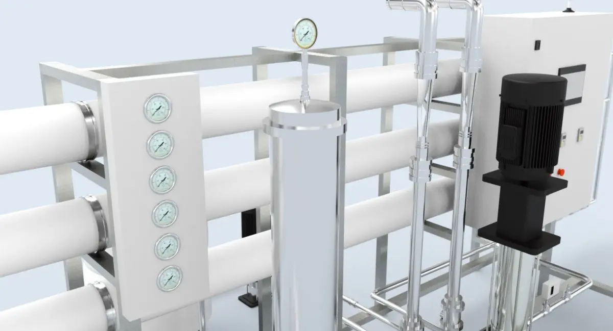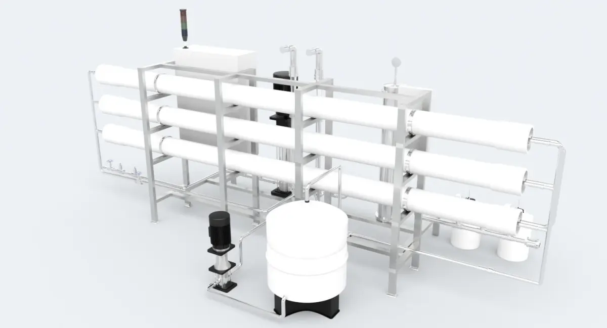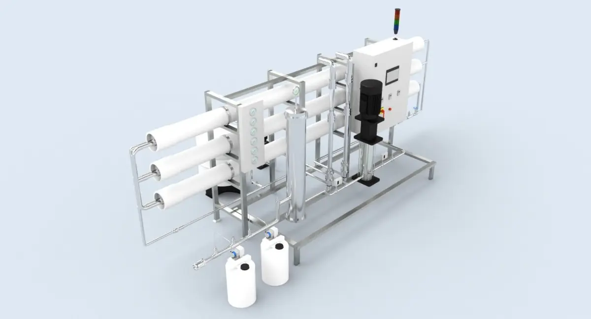 Reverse Osmosis unit (RO system, membrane filter unit) for water purification for Mineral water production line.