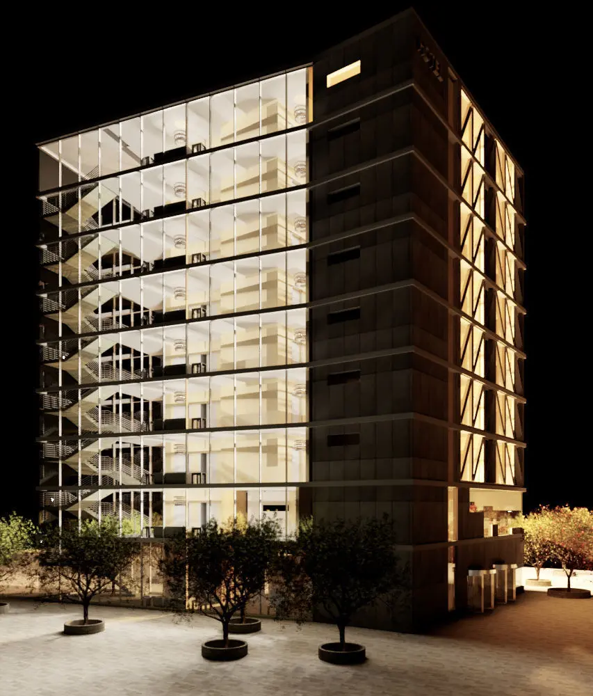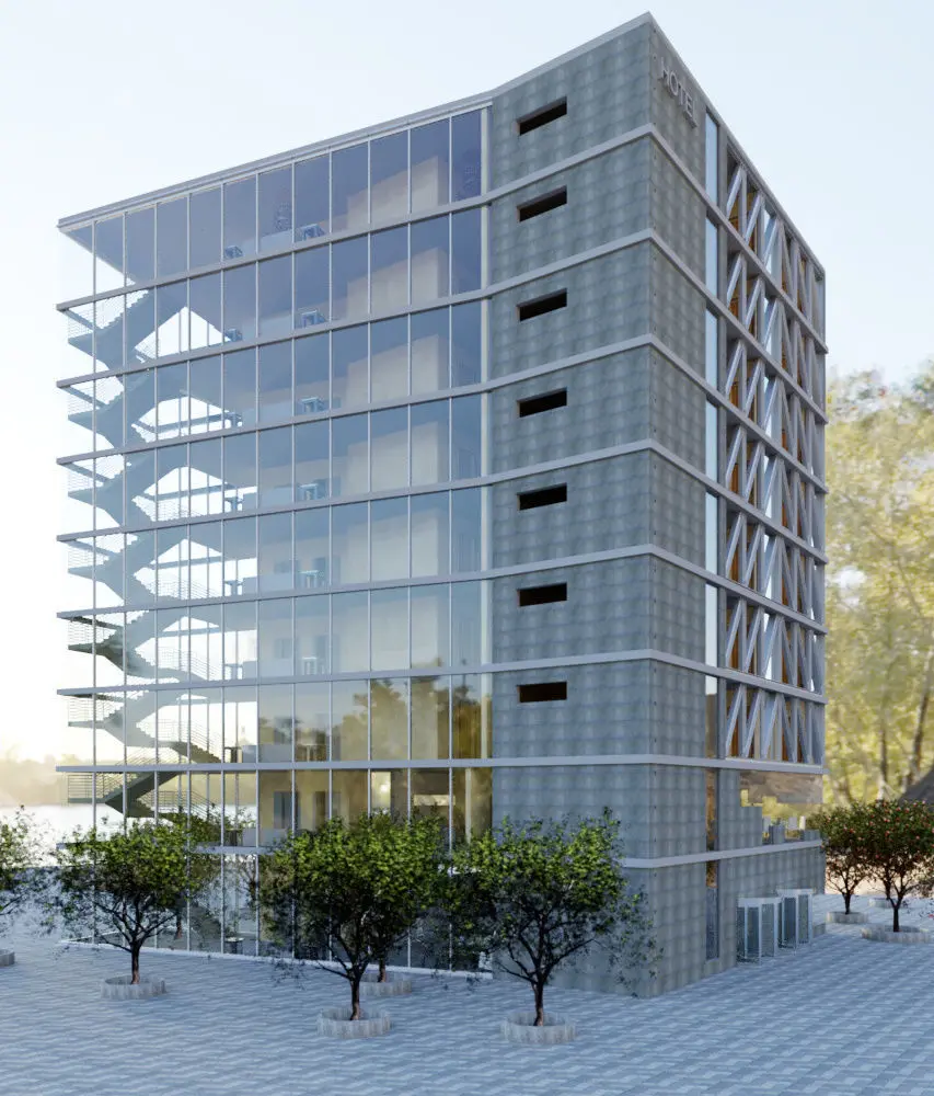 a 2 stars Hotel to accommodate as much rooms as possible on a small land, this design can be changed to be used as a commercial building or office building.the stairs can be rotated or moved according to your needs.
