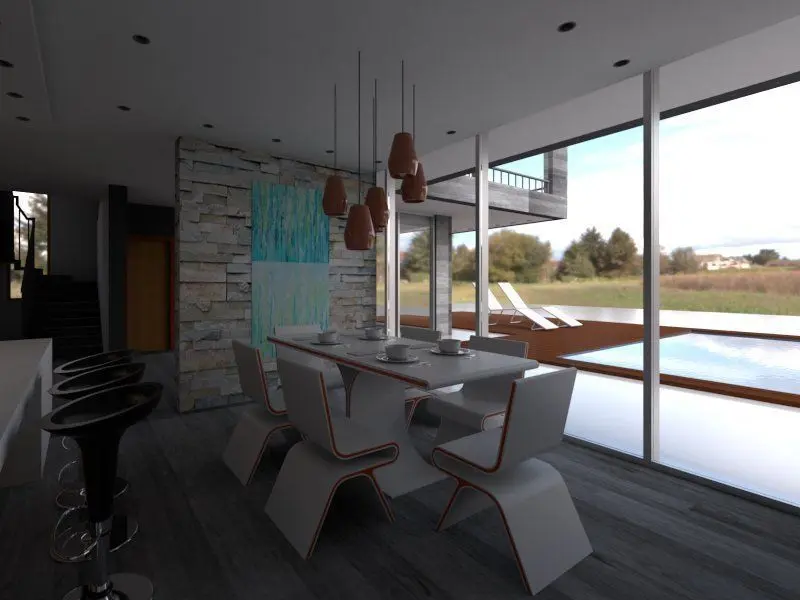 Revit Model of a modern Villa design withe exterior and interior design, modelling, materials, furniture and Lighting. You will also get FBX file and Collada file