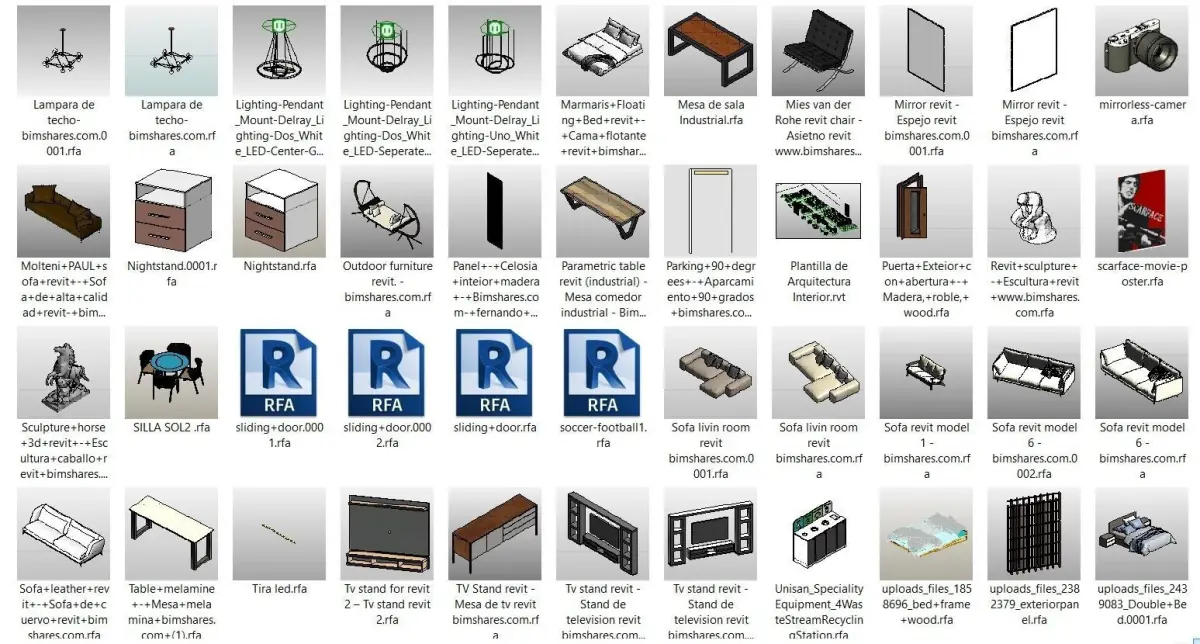 REVIT FAMILIES WITH THE BEST QUALITY YOU CAN FIND, MORE THAN 100 FAMILIES, FOR FURNITURE AND INTERIOR AND EXTERIOR DECORATION, WALLS, VEGETATION AND MUCH MORE.more than 100 families of excellent quality, compressed in a rar file