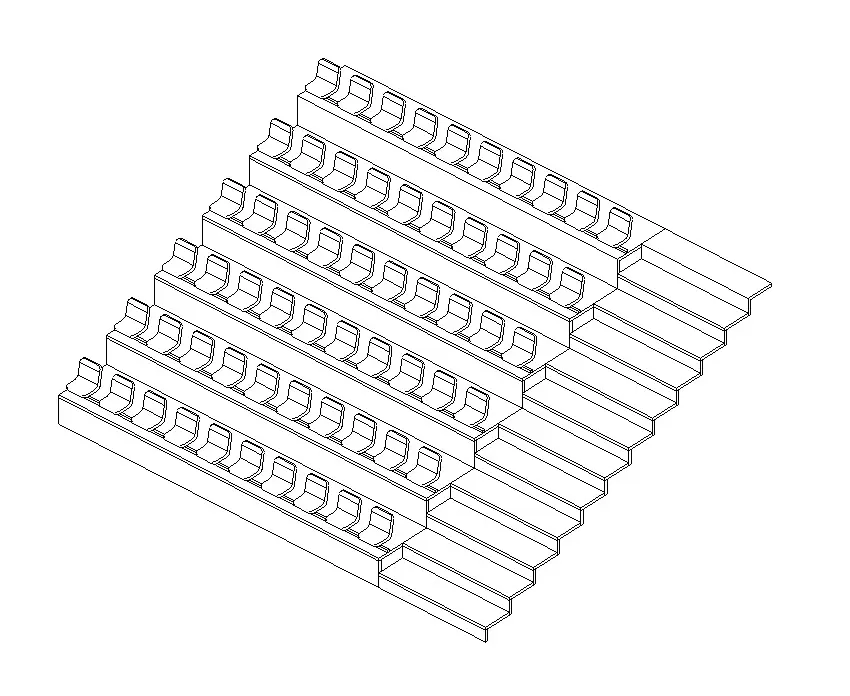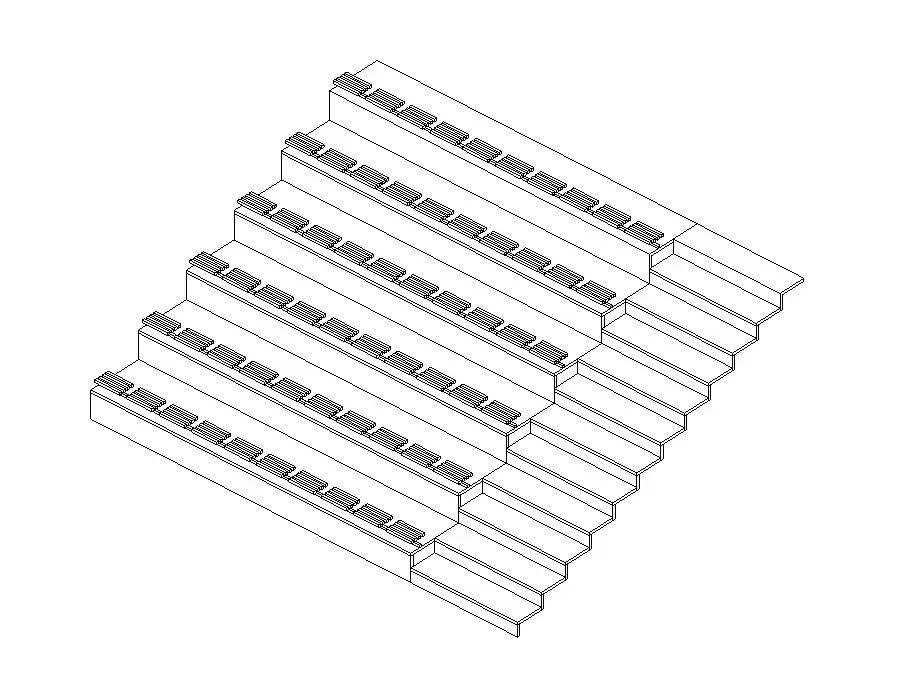 A parametric Revit family designed for audience spaces with places to sit and stairs for sale would be a flexible and customizable component that can be adapted to various seating arrangements and spatial configurations in architectural projects such as theaters, auditoriums, or conference halls. The family would combine seating elements with built-in staircases for easy access to different seating levels, offering both functional and aesthetic value.