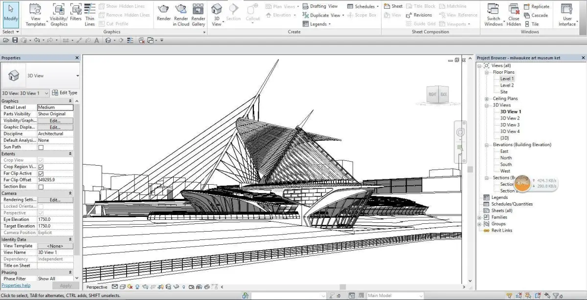 HomeCatalogRevit file - Milwaukee Art Museum 3D model
