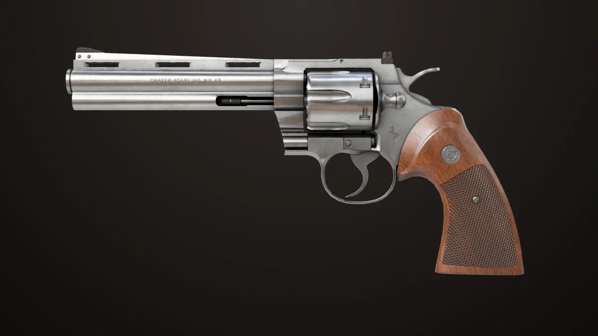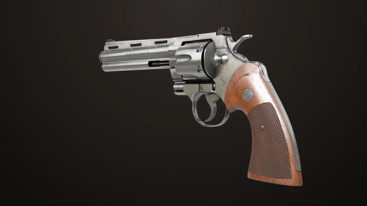 The Photorealistic 3D model of Revolver 05 Silver Model - Colt Python. This model is suitable for any visual production - broadcast, high-res film close-ups, advertising, games, design visualization, forensic presentation, etc.